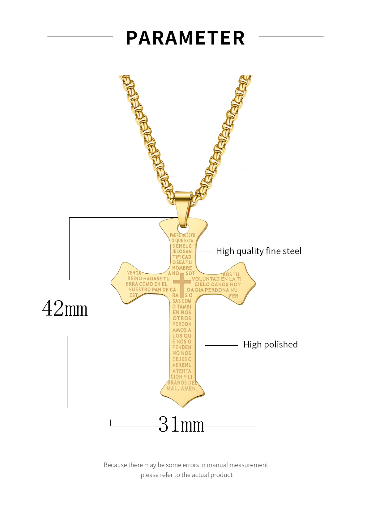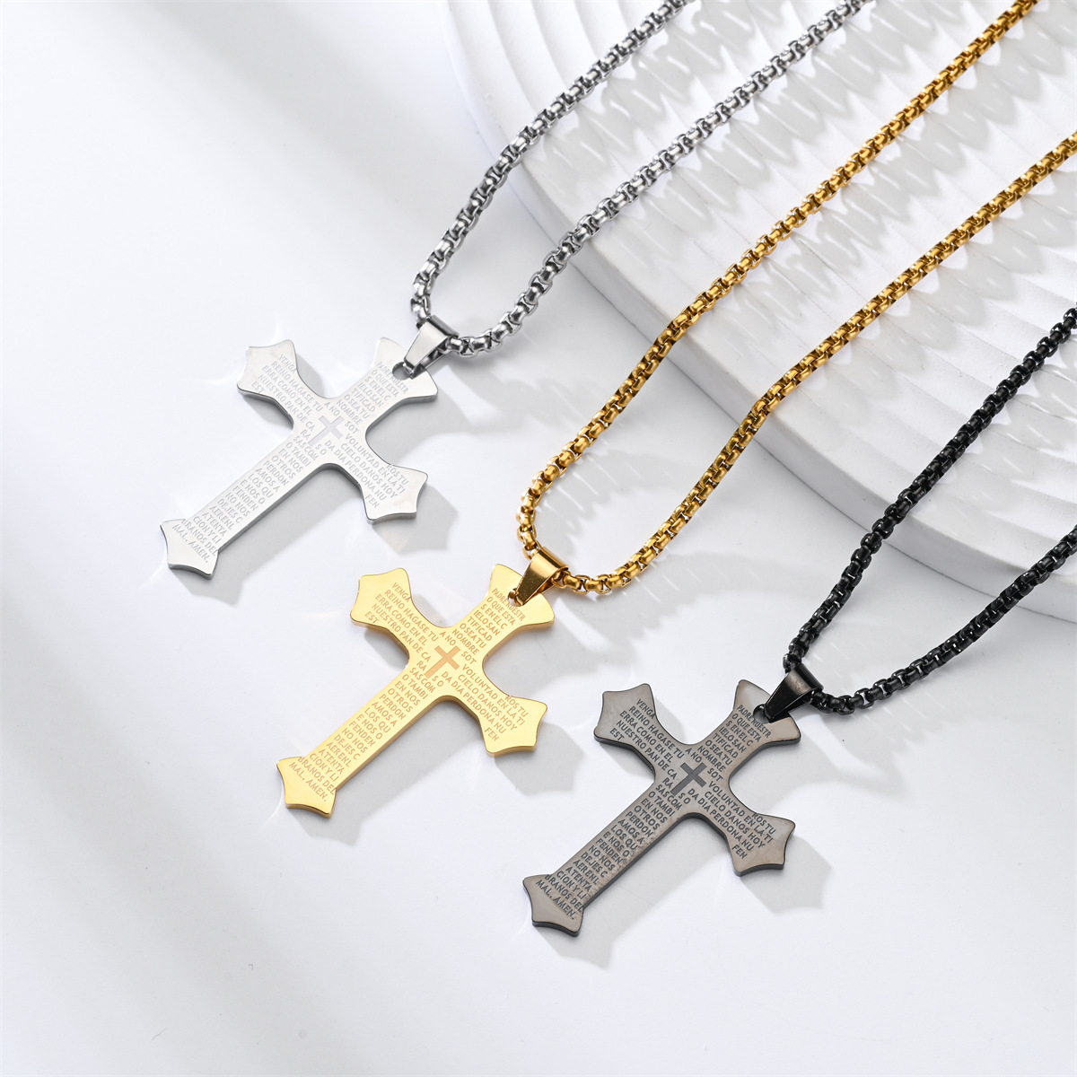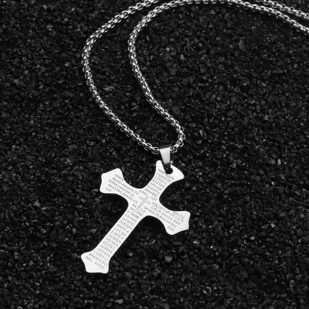 azhenan new spanish scriptures cross stainless steel hip hop versatile necklace student couple sweater chain