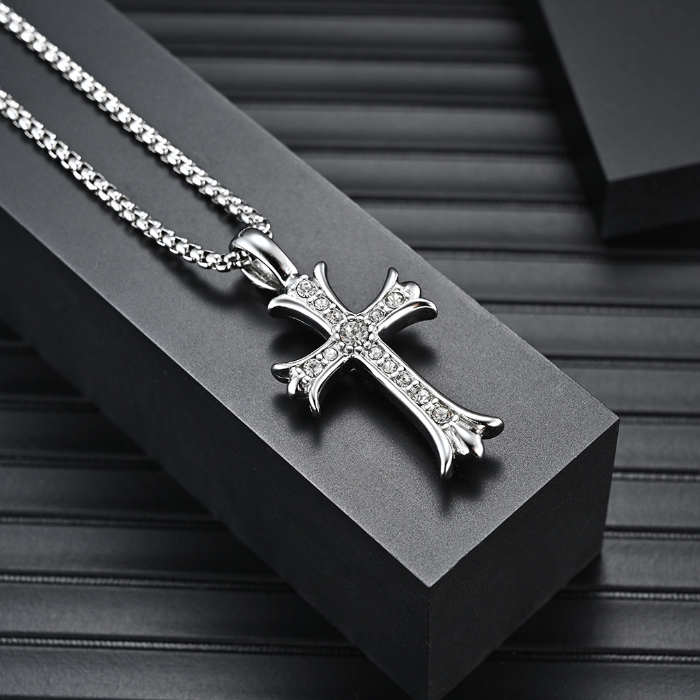 ayunan cruciate flower diamond-studded necklace european and american style hip hop men's senior niche design cross