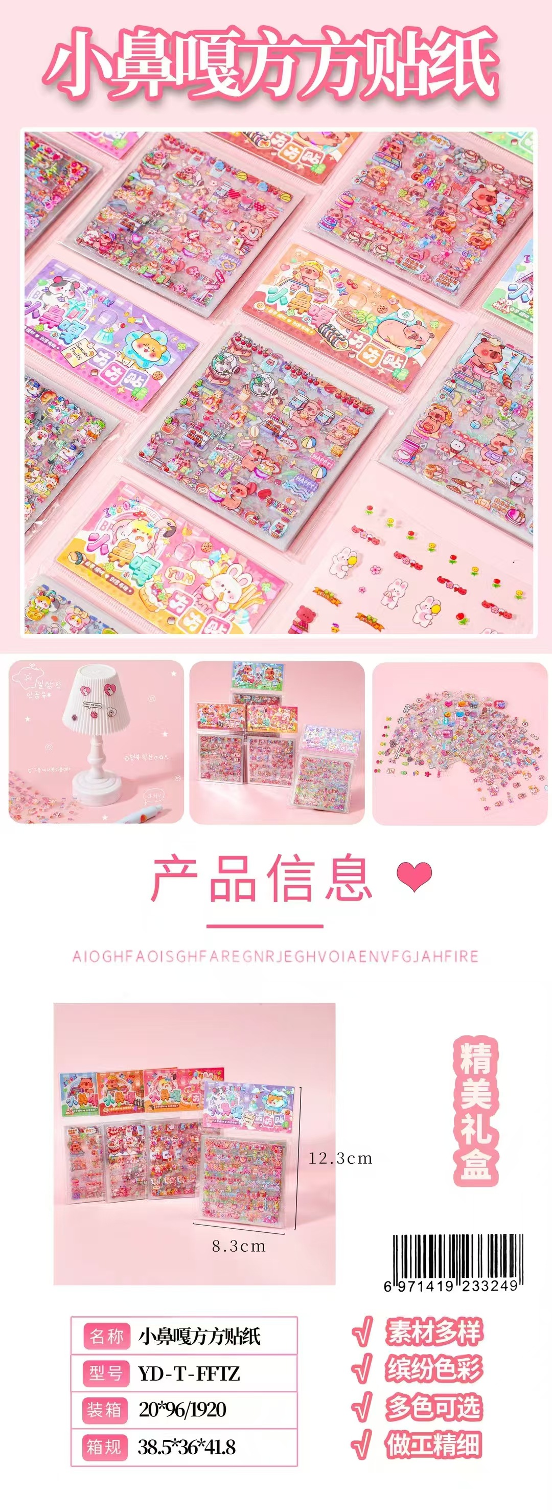 贴纸尺寸为:7.5*7.5cm