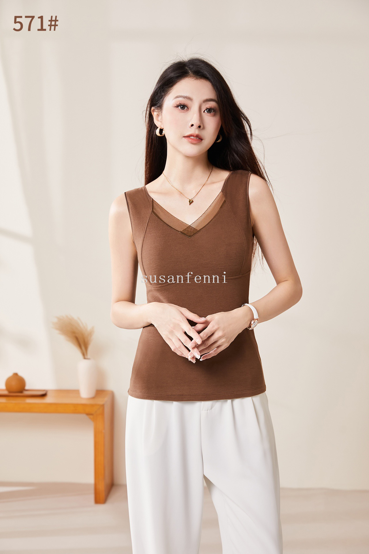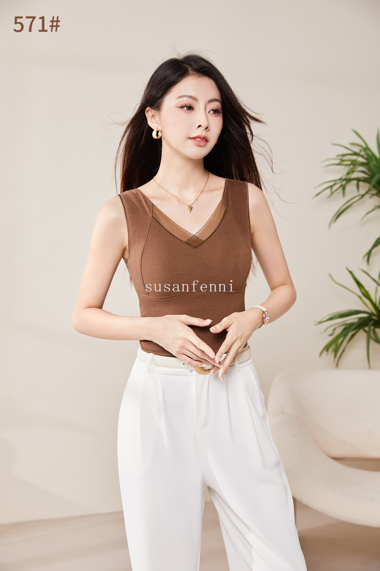 autumn and winter new bottoming cashmere vest with lace strap women's clothing v-neck inner match top factory direct sales 中文版