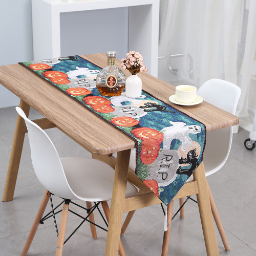 cross-border new arrival polyester cotton jacquard woven halloween table runner cartoon table runner family dining table table runner bed runner decoration