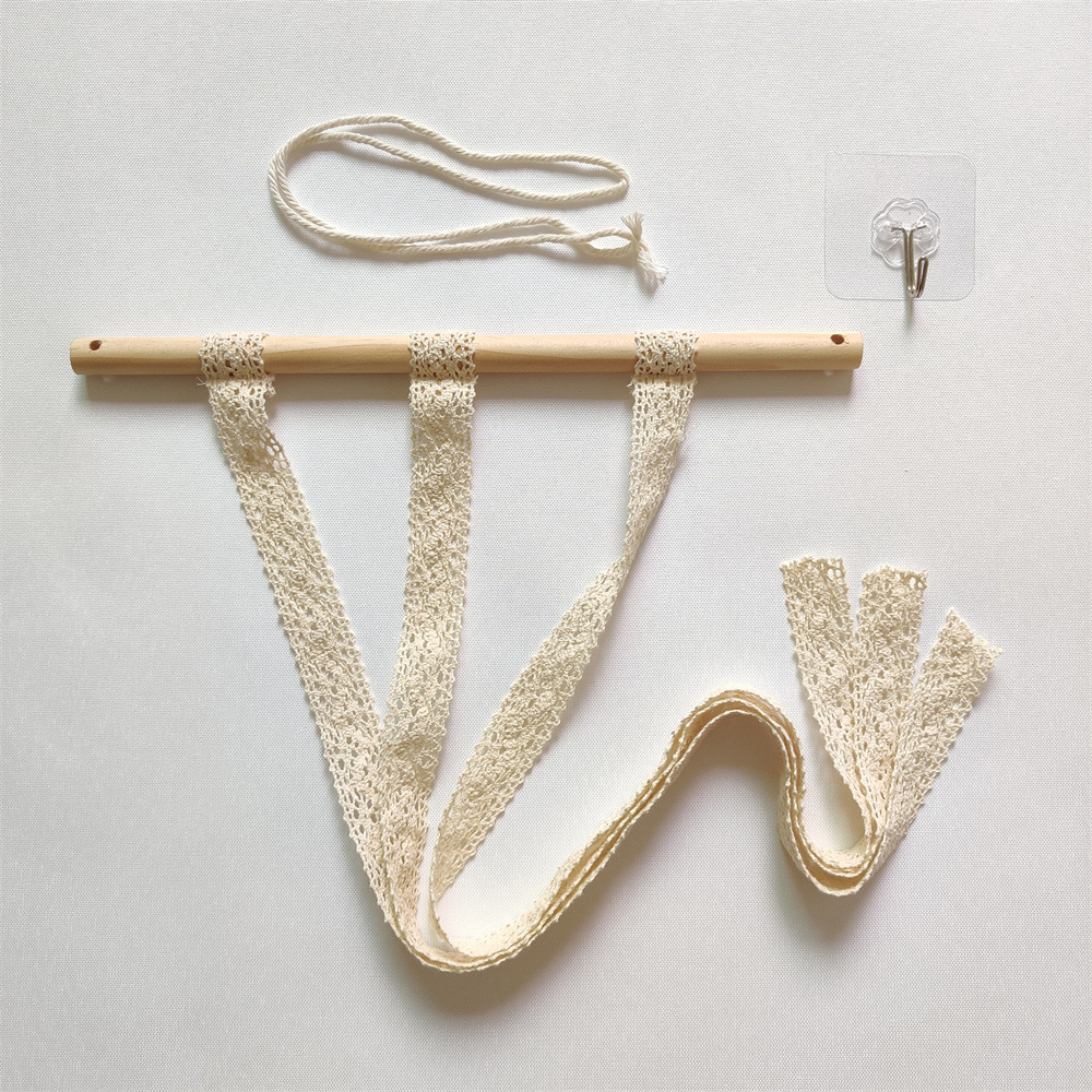 wooden stick + lace ribbon (transparent hook)