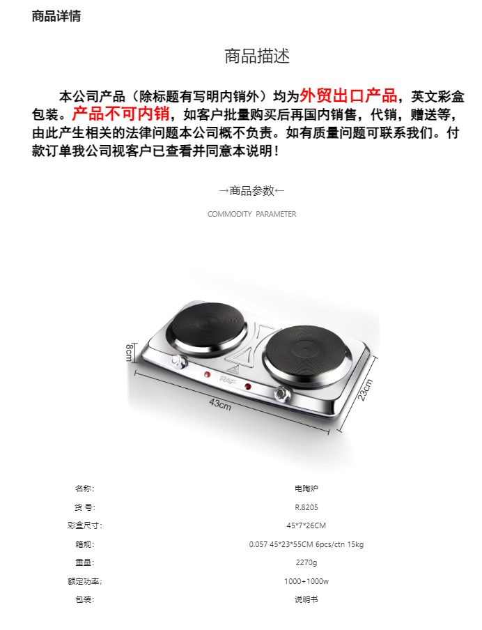 raf cross-border european standard single burner stove double stove stainless steel hot sale cooking and boiling water electrothermal furnace adjustable non-pick pot 中文版