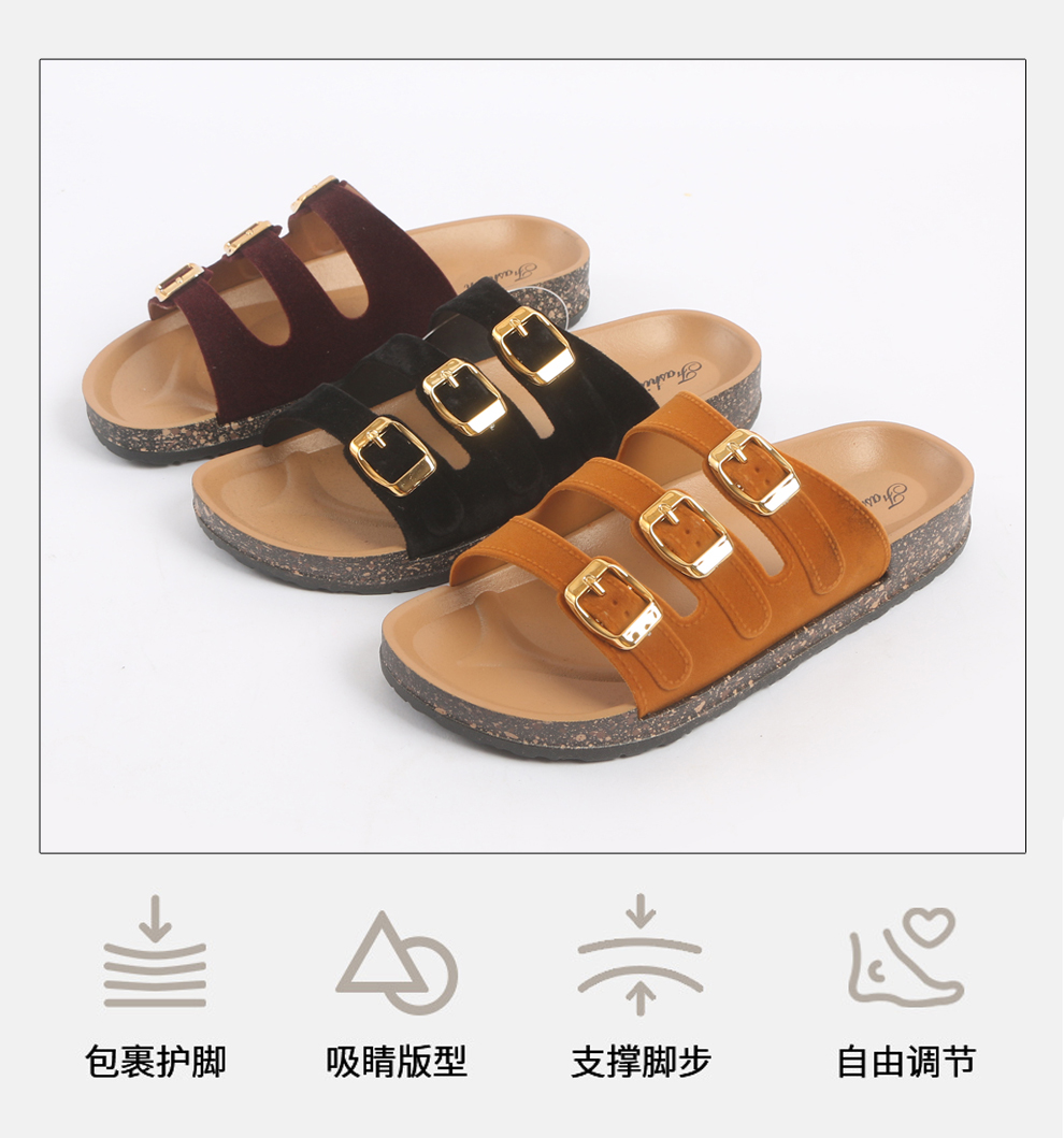 产品名称:三扣带吐司勃肯拖鞋夏日外穿时尚百搭一字沙滩鞋凉拖鞋厚底情侣鞋