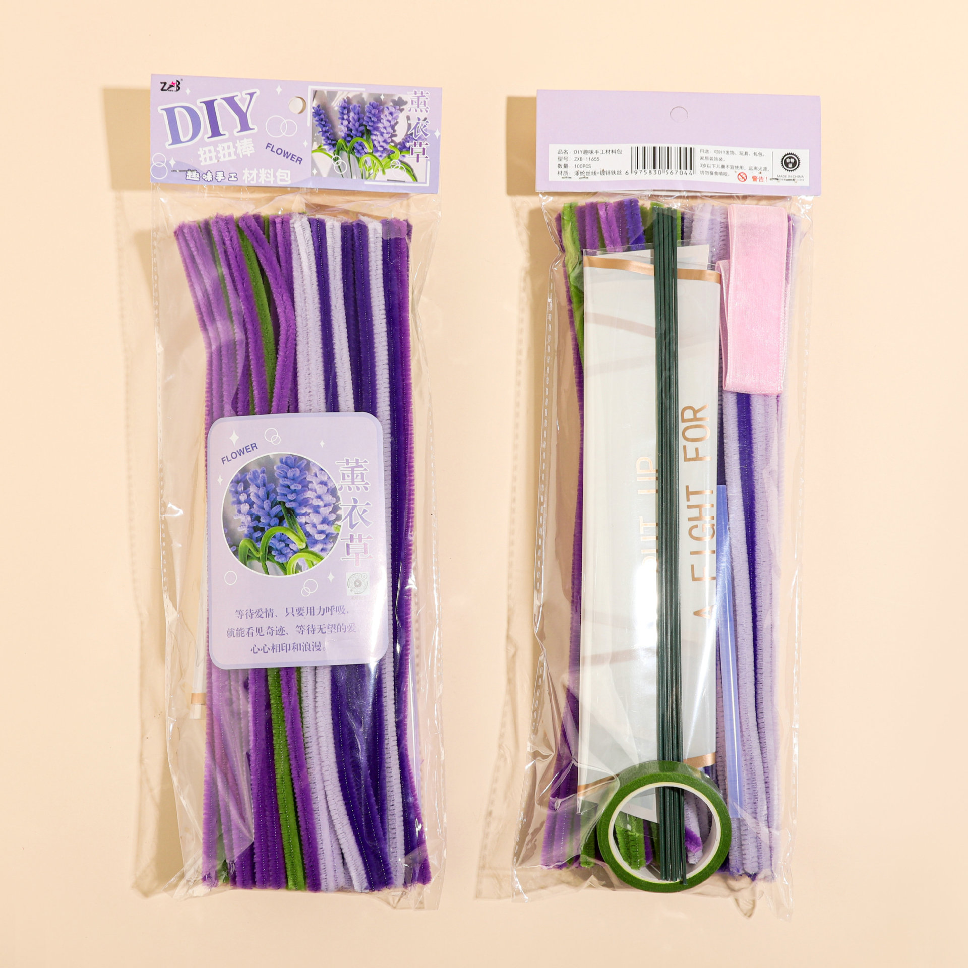 11644 set lavender about 100 flower delivery poles + glue stick ten packing bags ten ribbons ten greeting cards ten floral tape