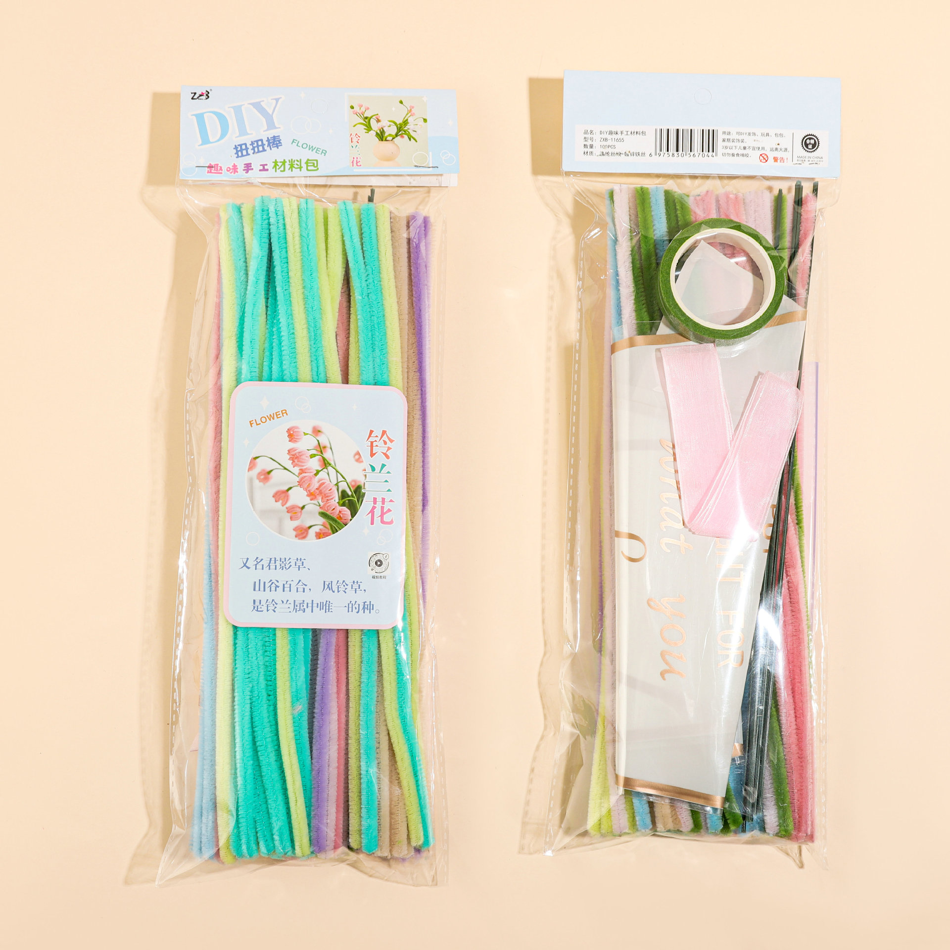 11644 set of tulip about 100 flower delivery poles + glue stick ten packing bags ten ribbons ten greeting cards ten floral tape