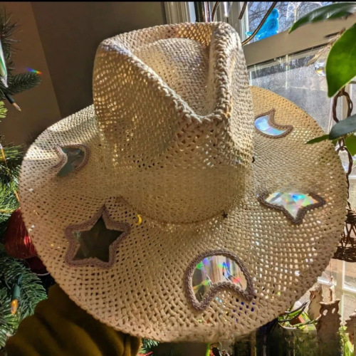 cross-border new suncatcher cowgirl straw prism hat sun-catching cowgirl straw hat