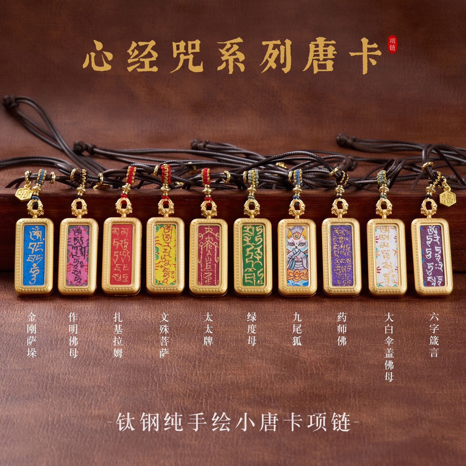| Name | 【Tangka】1.3MM Titanium Steel Pure Hand-Painted Mineral Sand Heart Sutra Mantra Series Small Tangka Necklace