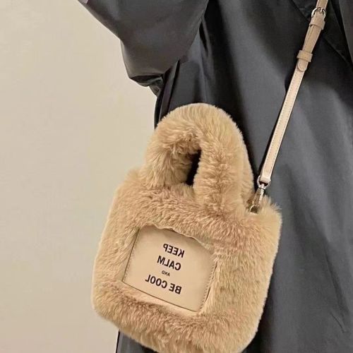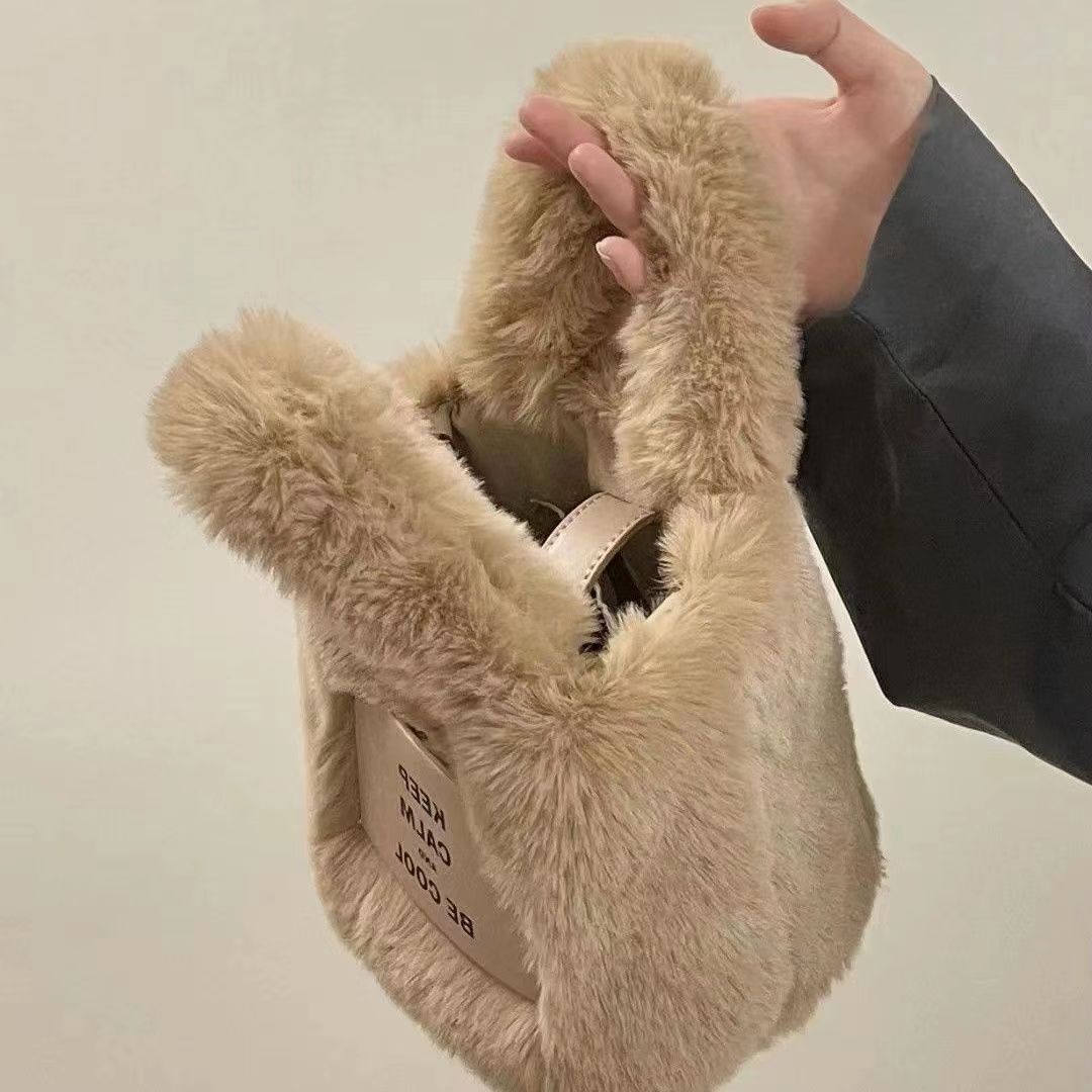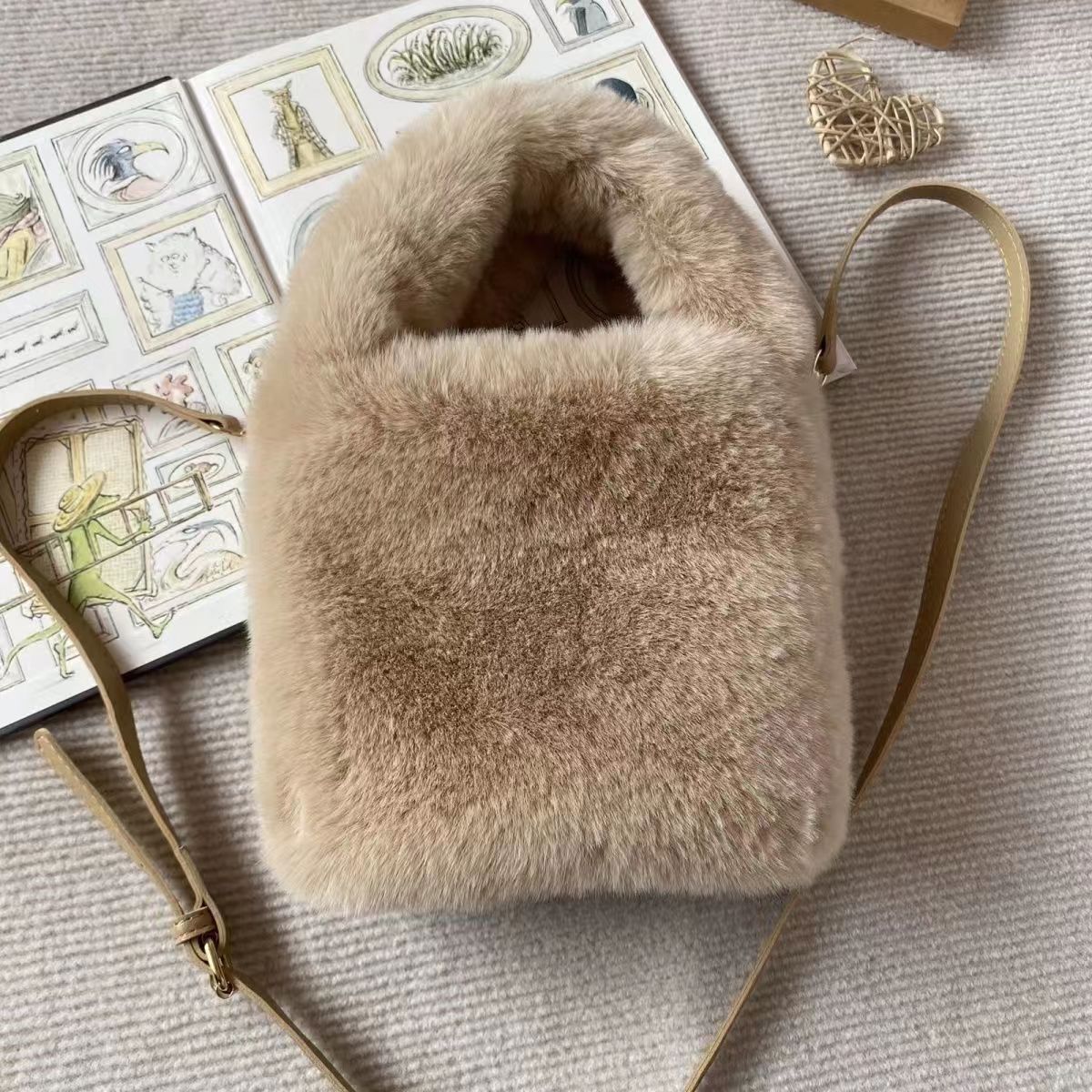 source factory wholesale autumn and winter new fashion plush bucket fur bag advanced texture portable crossbody shoulder bag 中文版