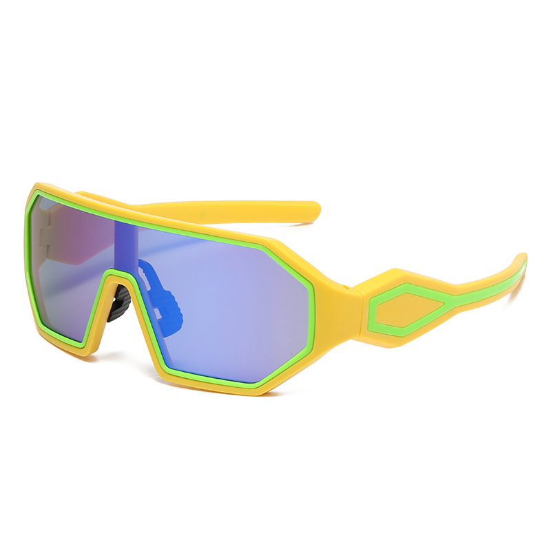 yellow frame green ring blue lens