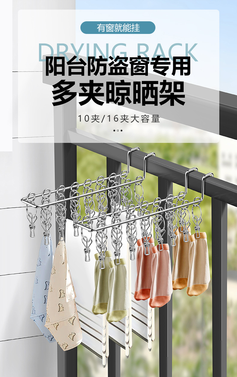 stainless steel drying socks rack burglar mesh socks' clip socks rack home balcony multi-clip hanger storage rack 中文版