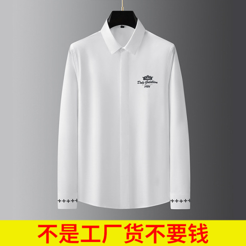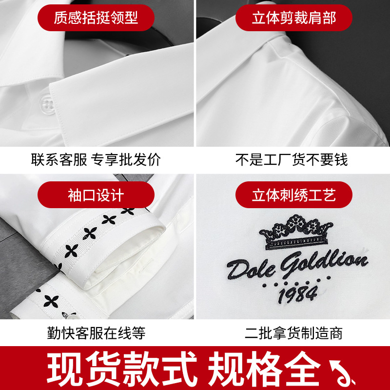 european station fashionable slim-fit embroidered high-end sleeve opening braid long-sleeved shirt men's light luxury high-end shirt men 中文版