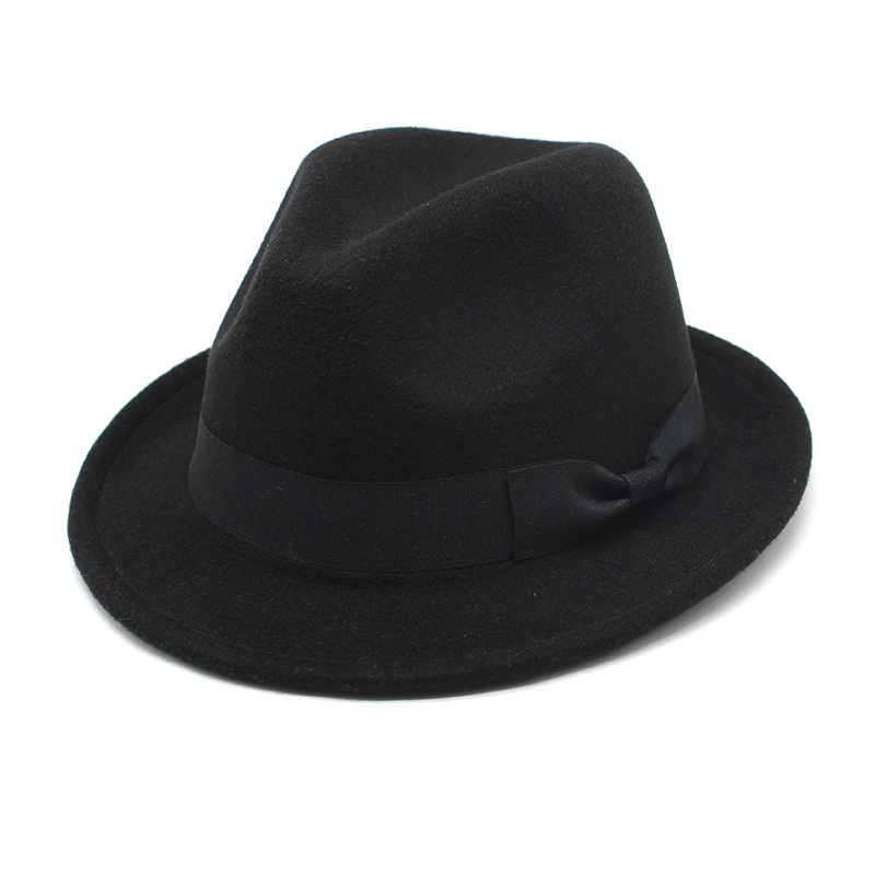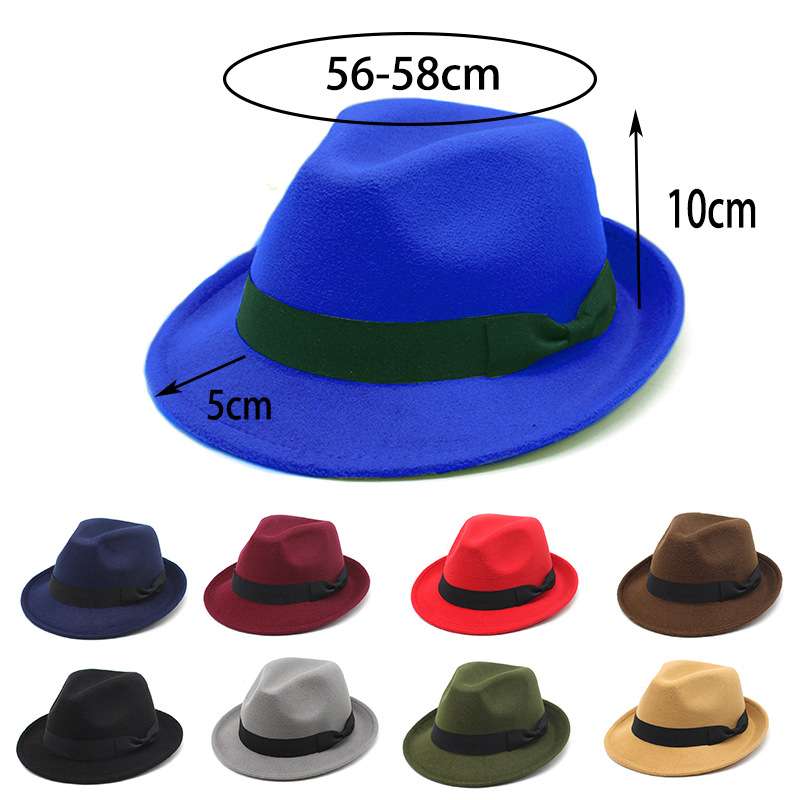 Cross-border British-style imitation wool felt hat classic jazz hat for women and men, autumn and winter models with couple's bow ties