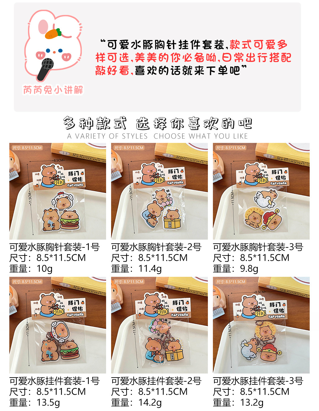 6# cute capybara pendant set-3