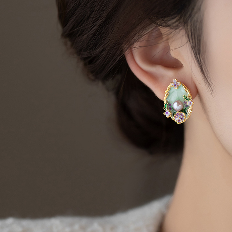 jardin monet pearl earrings for women colored drip glaze oil painting flower earrings baroque retro elegant pearl earrings