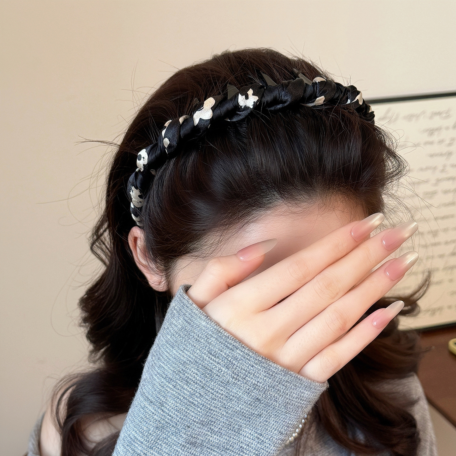 black and white floral headband