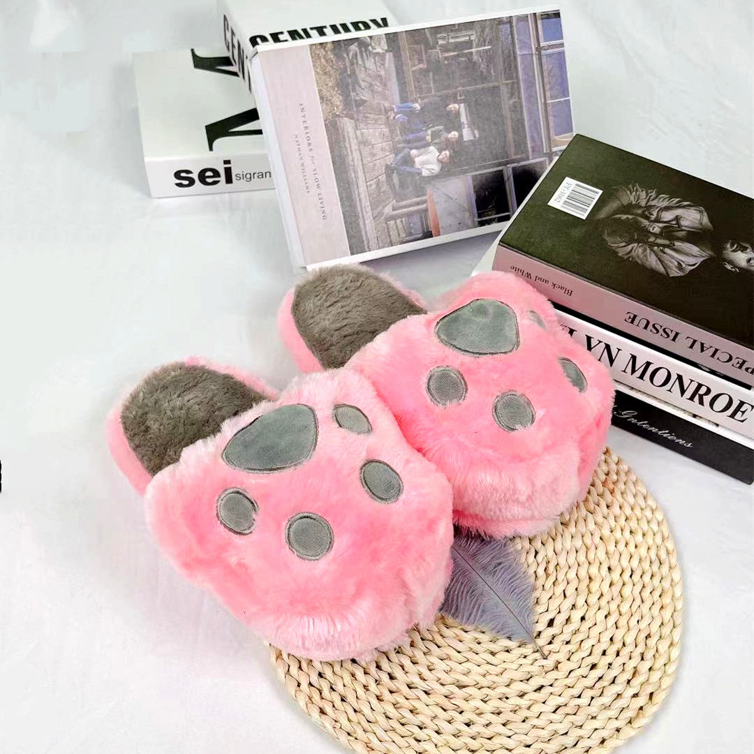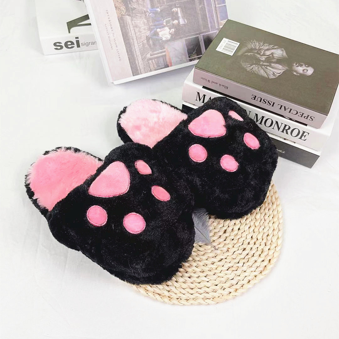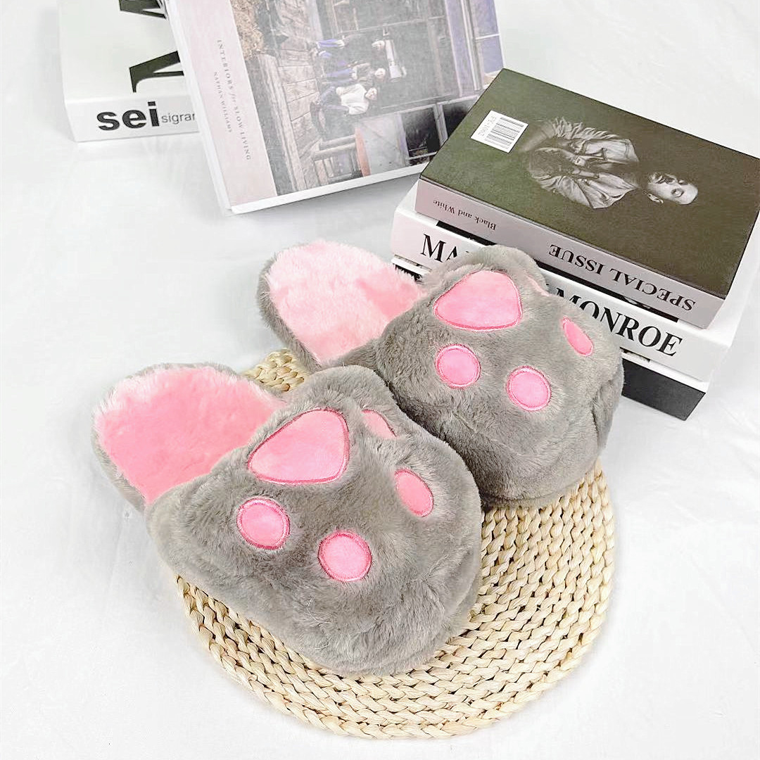 hand-shaped brush cat's paw slippers winter warm indoor cotton slippers cute girl heart hand-shaped brush plush slippers 中文版