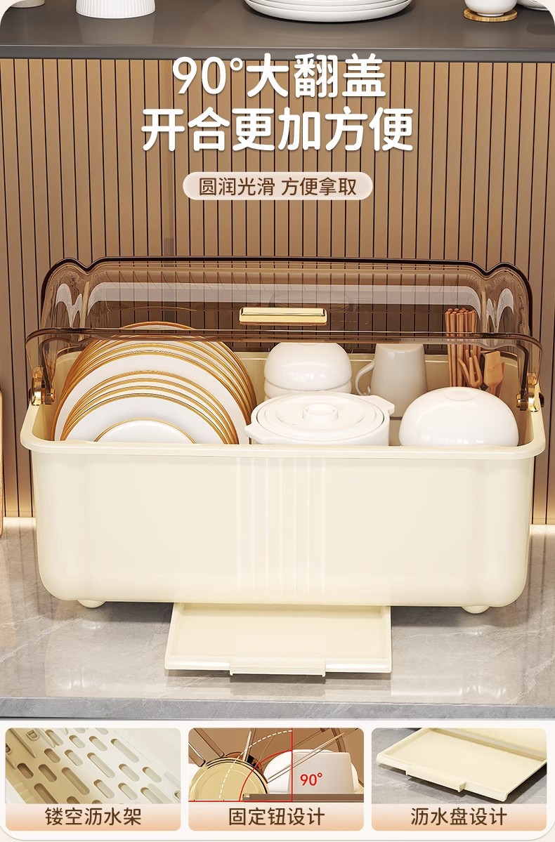 extra large white [chopsticks holder + dust cover + draining tray]]