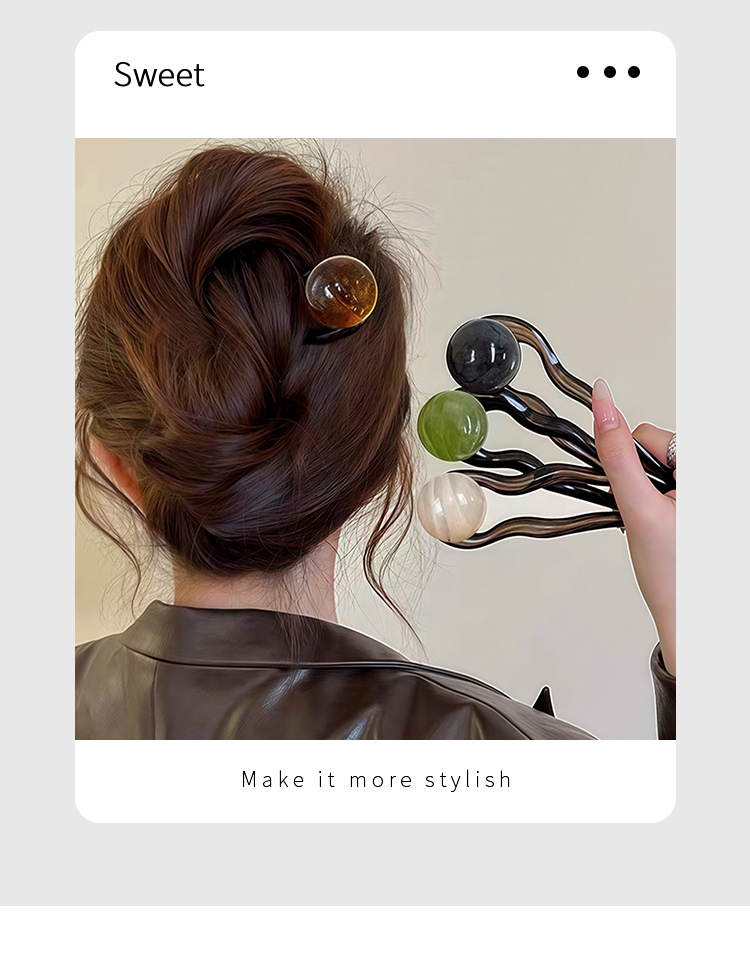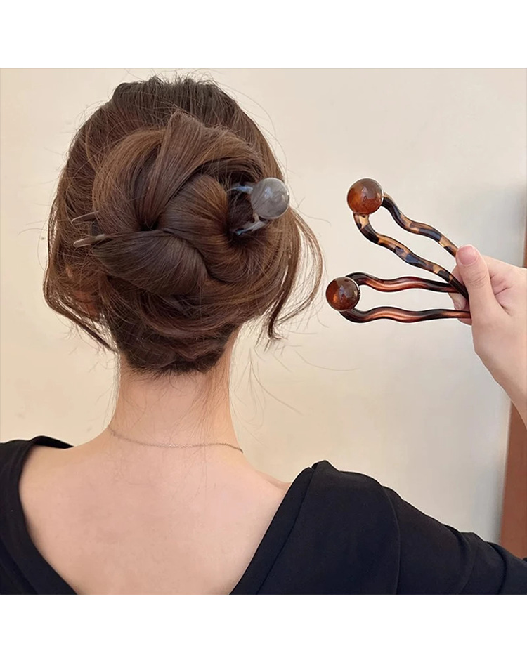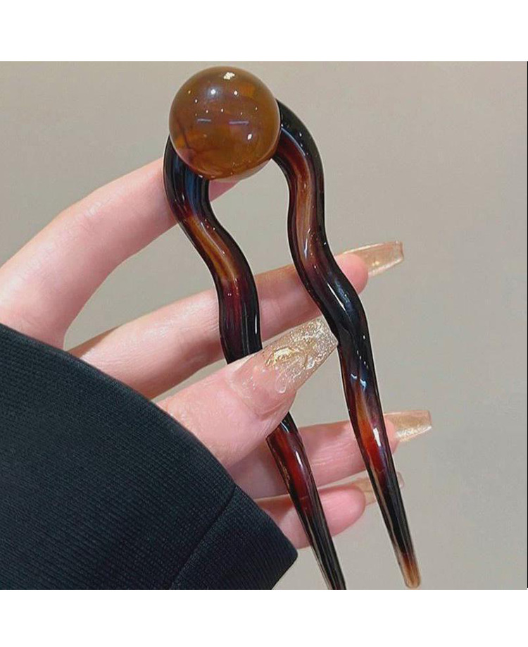 wave u-shaped hairpin [amber beads]]
