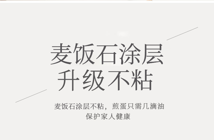 2.不粘厨具传热均匀,使用时只须用中至小火,便可烹调出美味食物。采用大火时,应注意避免烧到把手,且不可干烧,锅内必须有食物或水。