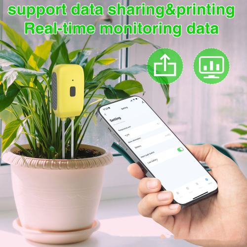 Product Features:Bluetooth connection, check the humidity and environmental temperature in the soil of plants, lawns, etc.Statistical temperature and humidity function, low battery reminder, accurate with mobile phone appReadings, allowing users to know the specific conditions of the soil at any time, solving the problem of traditional temperature and humidity readings being difficult to readProblem.