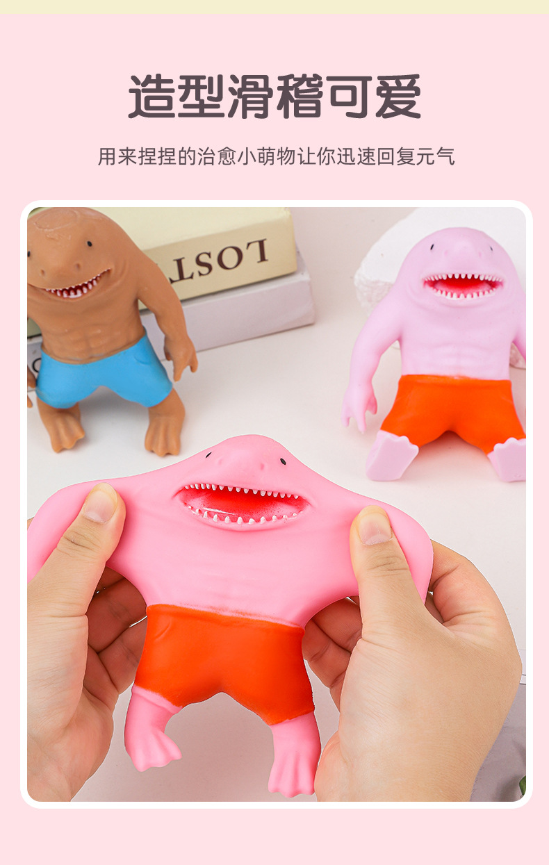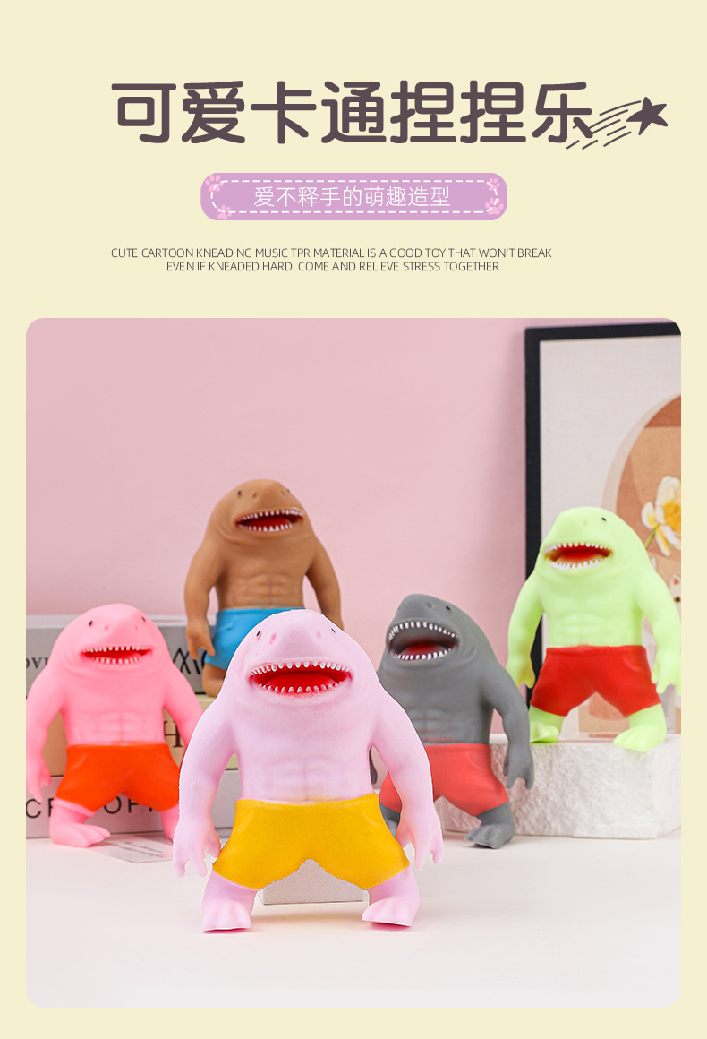 new red pants shark decompression toys for children pinch pull deformation squeezing toy vent decompression decompression toy 中文版