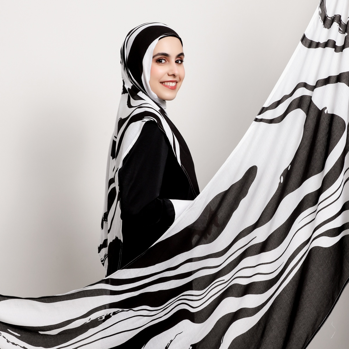 Watermark printing wide-edge cotton-linen thin scarf