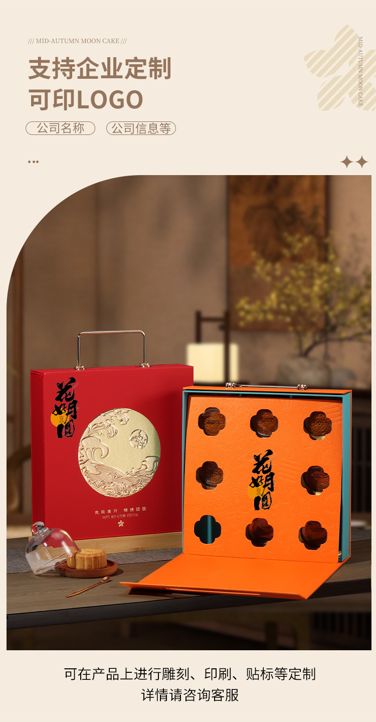 real orange; beautiful eight-piece moon cake gift box