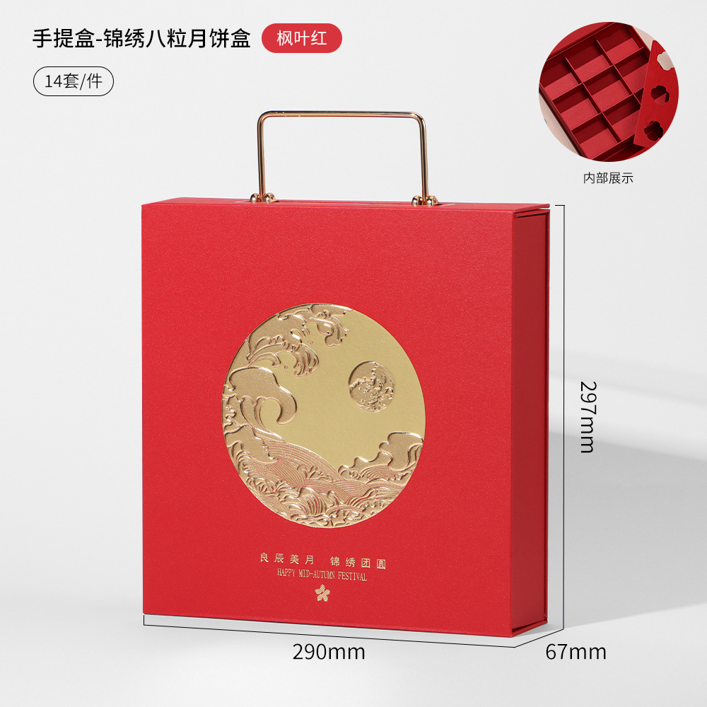 maple leaf red; beautiful eight-piece moon cake gift box