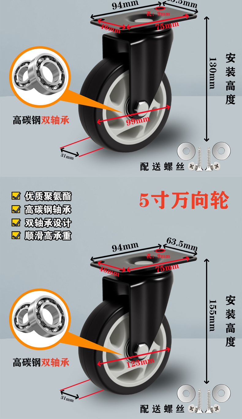 5.0-inch universal wheel (heavy type) height 155mm