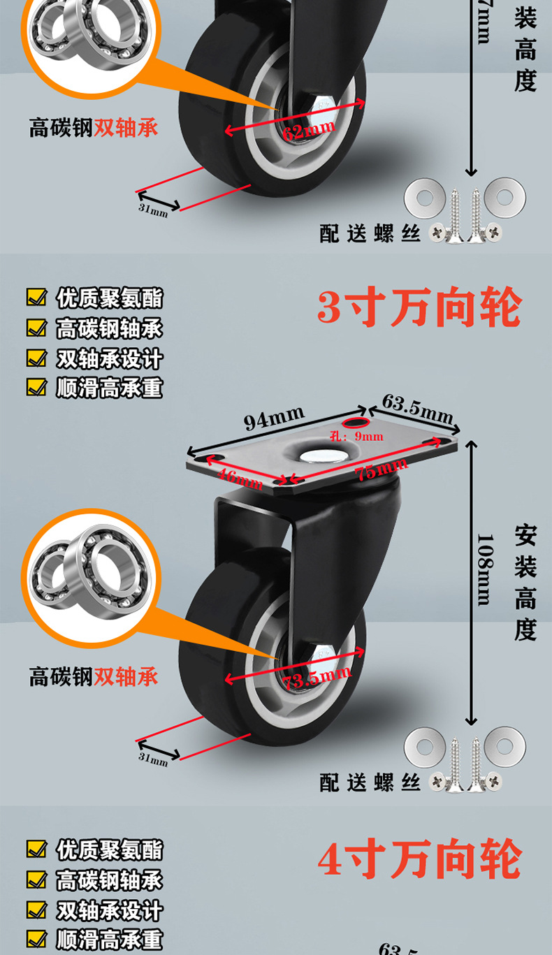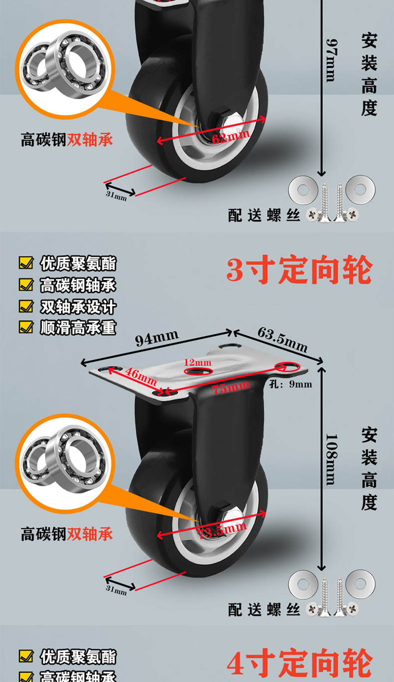 3.0-inch directional wheel (heavy type) height 108mm