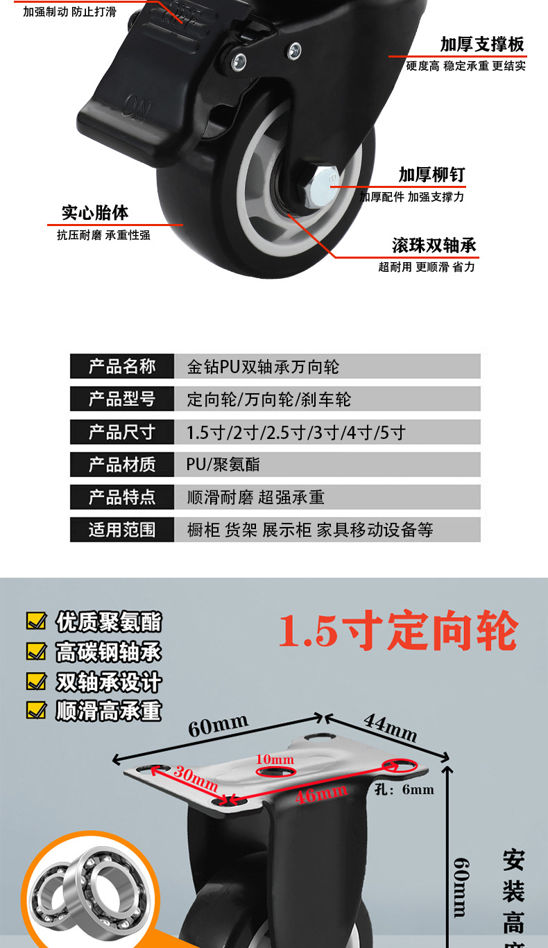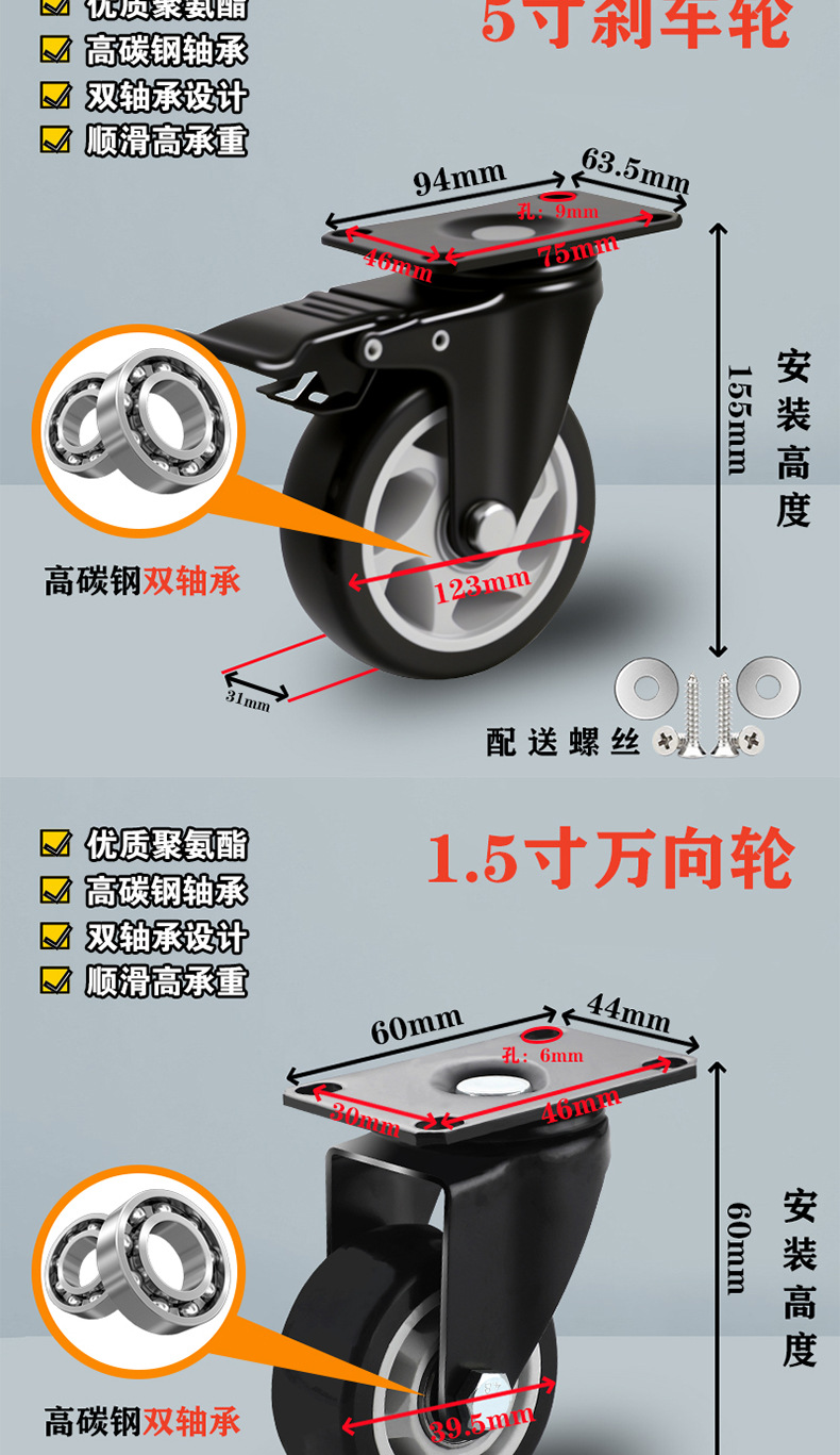 1.5-inch directional wheel (heavy type) height 60mm