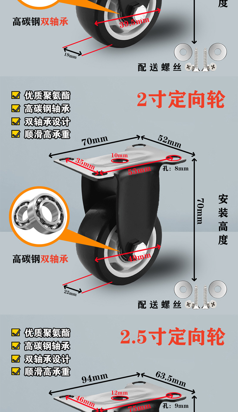 2.5-inch directional wheel (heavy type) 97mm high