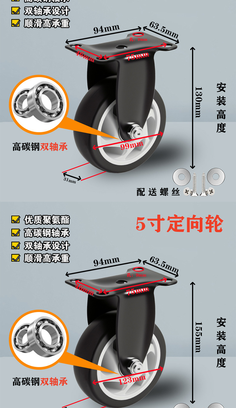 5.0-inch directional wheel (heavy type) height 155mm