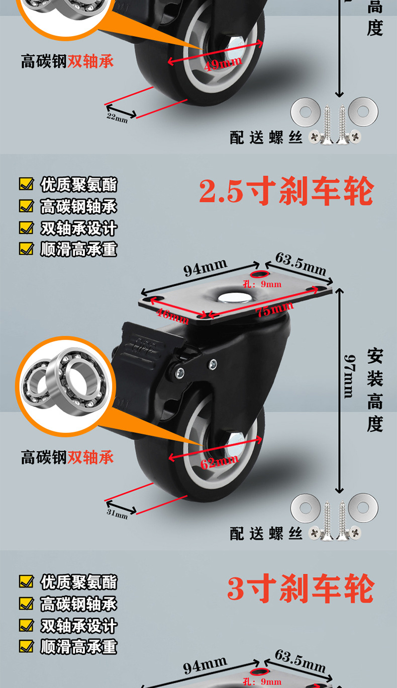 2.5-inch universal wheel (heavy type) 97mm high