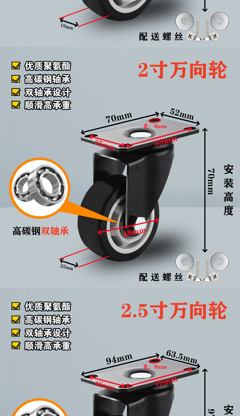 2.0-inch universal wheel (heavy type) height 70mm