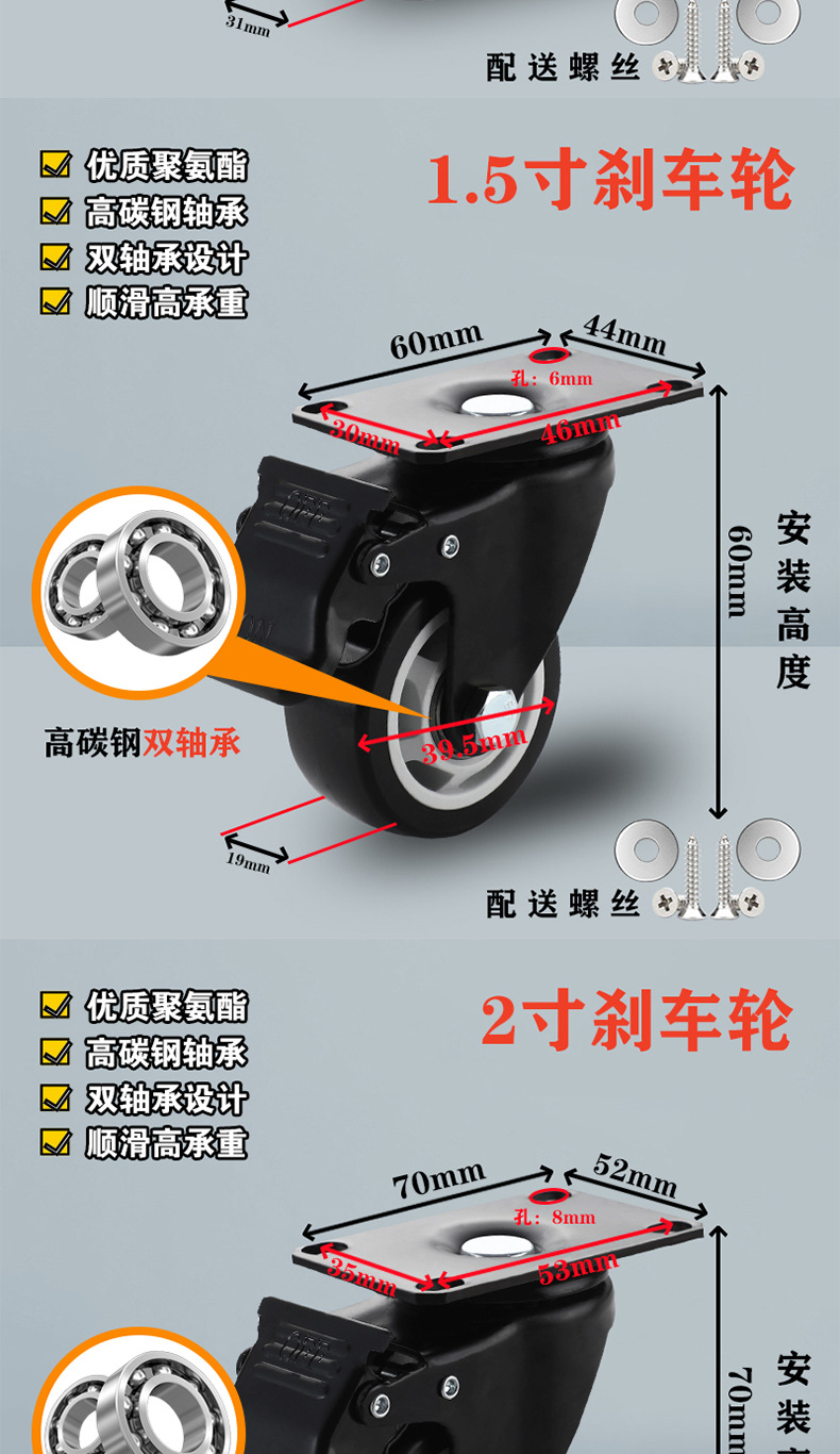 2.0-inch brake wheel (heavy type) height 70mm