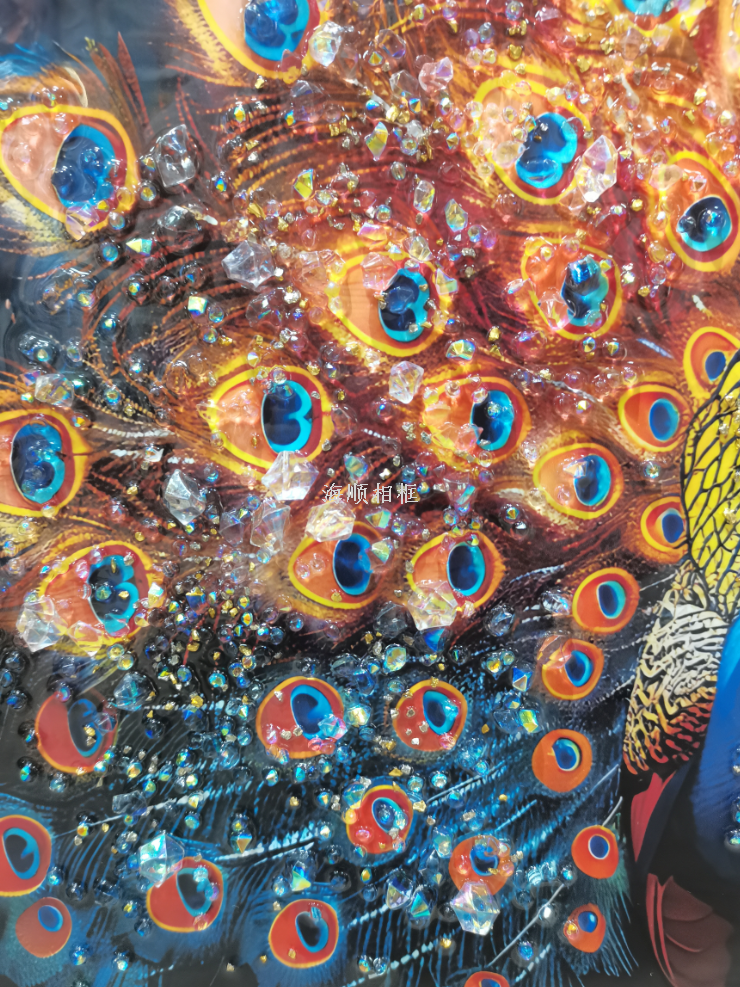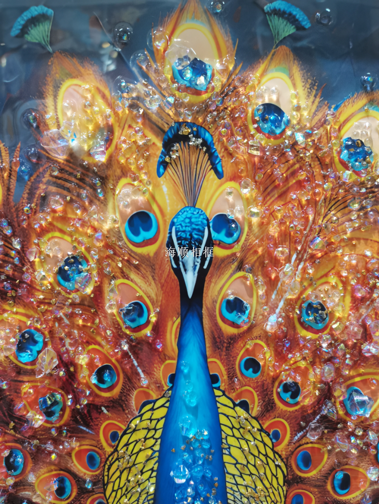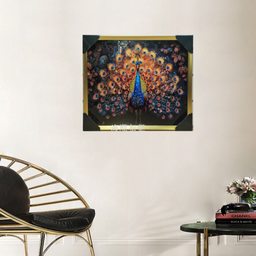 bright crystal diamond peacock decorative painting light luxury living room background wall decorations 中文版