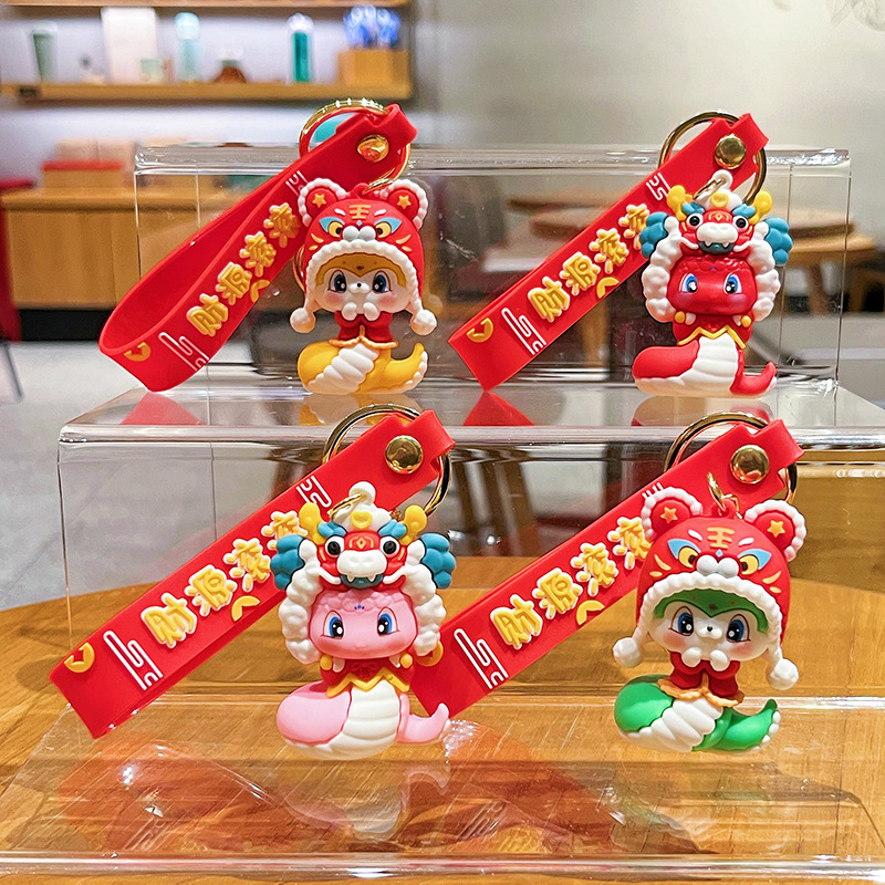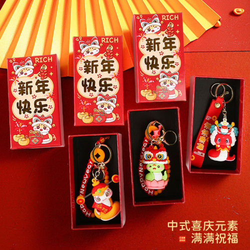 national tide lion relief style pendant-red + snake year gift box + snake year gift bag
