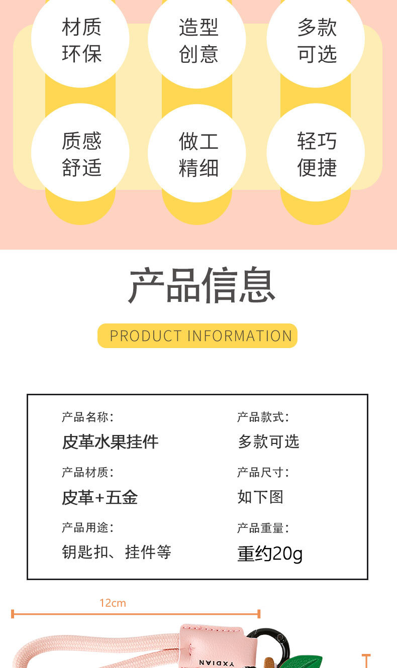 leather fruit pendant-peach