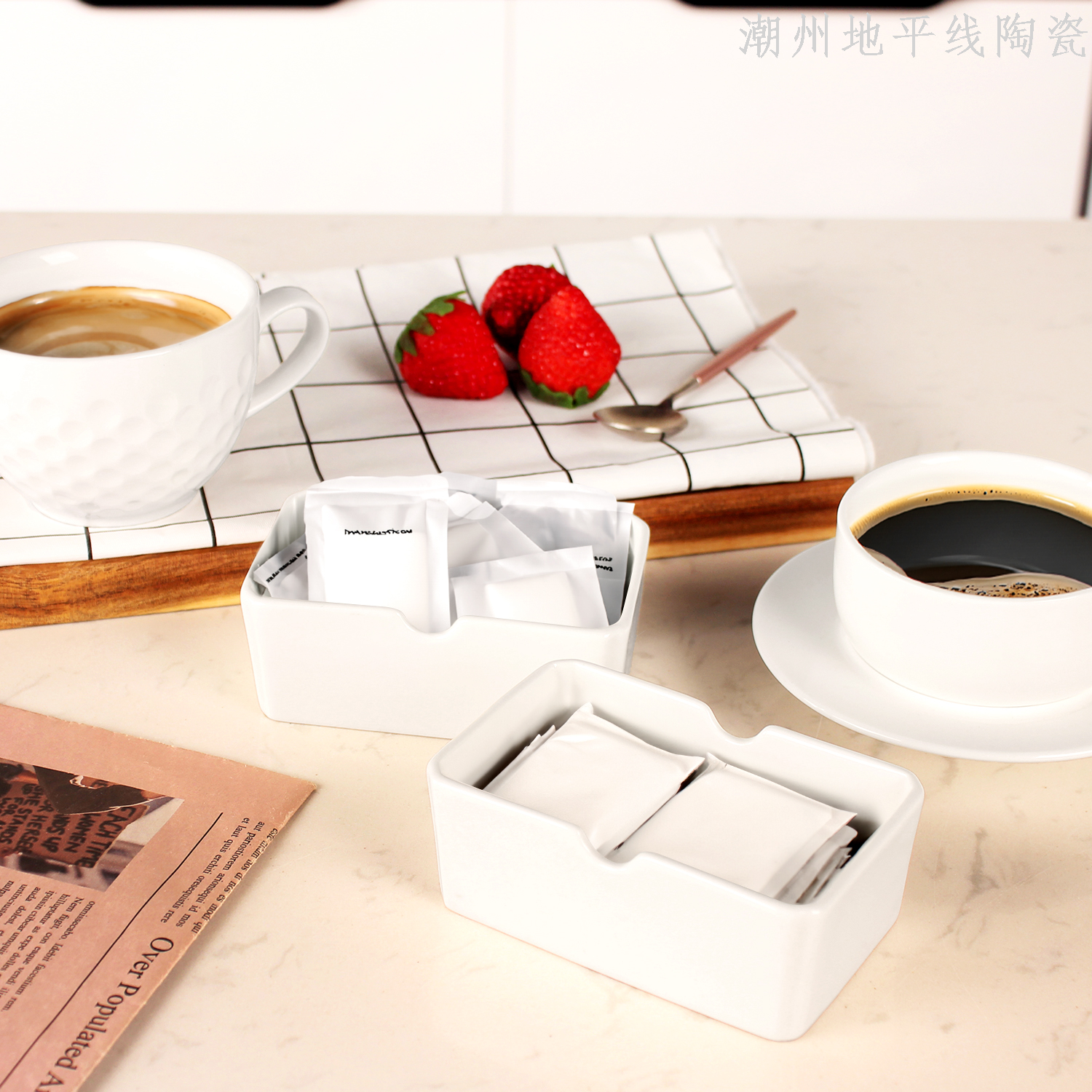 4-inch ceramic cutting angle straight side rectangular sugar bag chic simple modern style large capacity