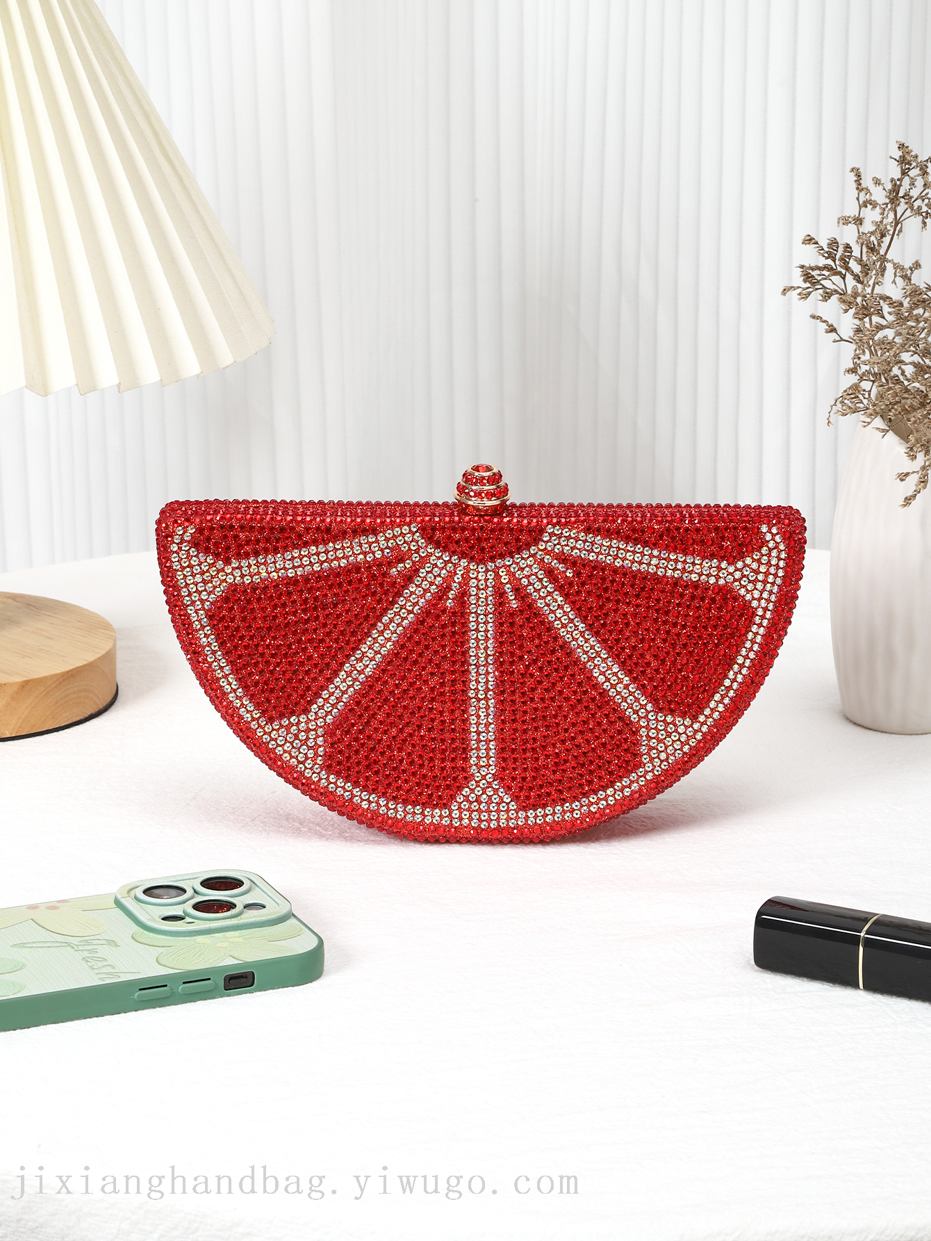 Cross-Border Hot Full Diamond Watermelon Shape Rhinestone Bag Diamond Evening Bag Foreign Trade Clutch Small Handbag 中文版