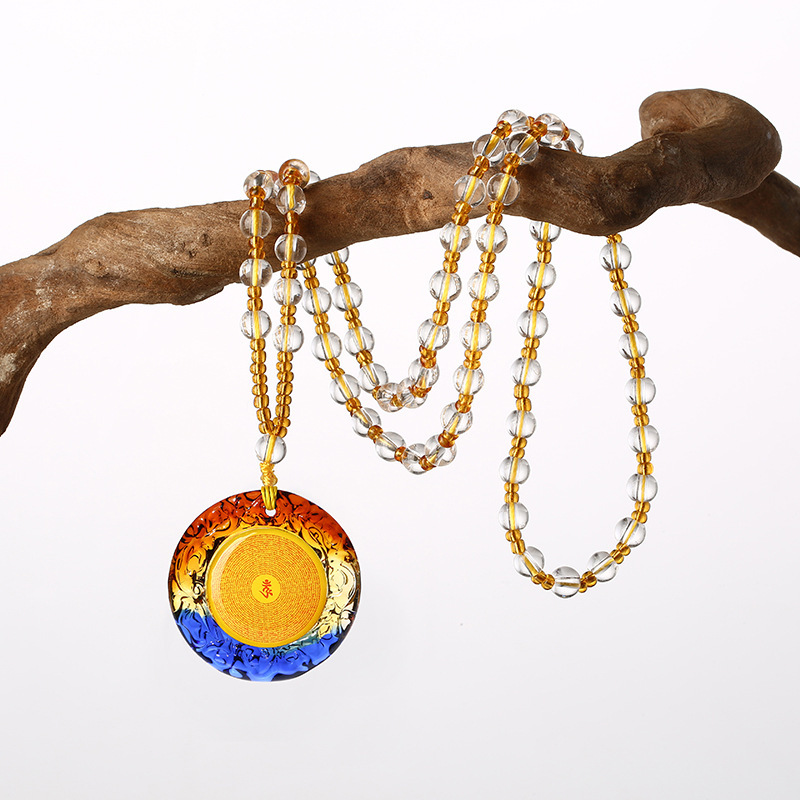 round one side shurangama mantra one side six words + transparent yellow chain