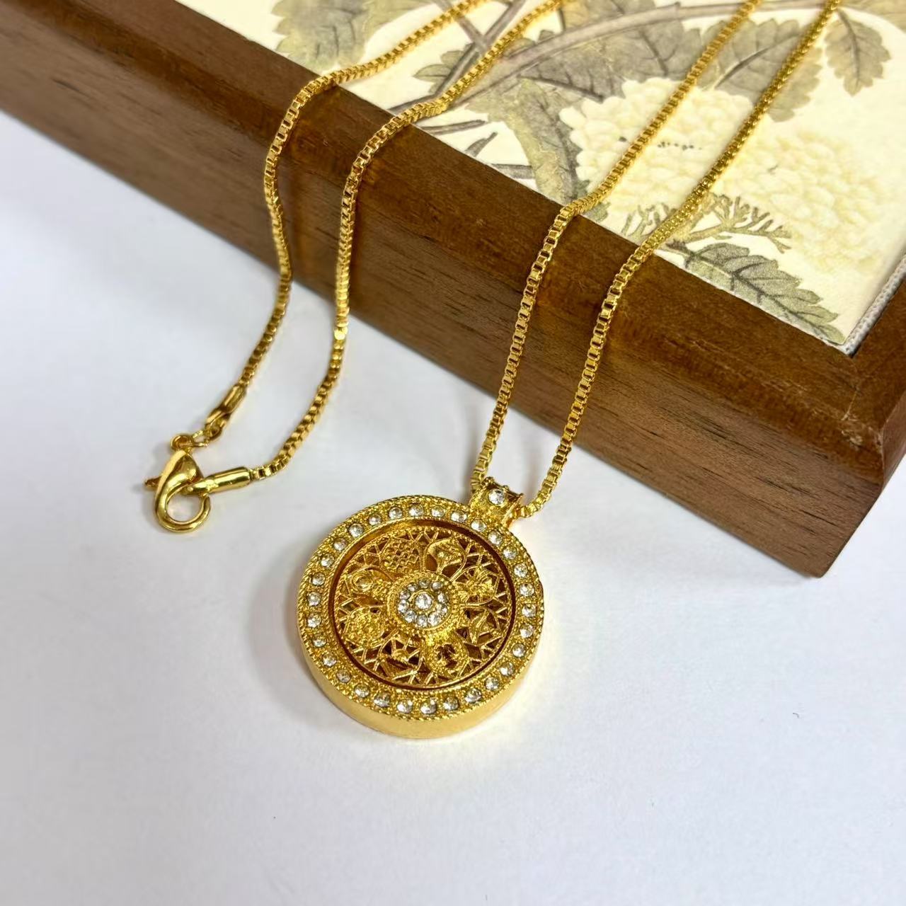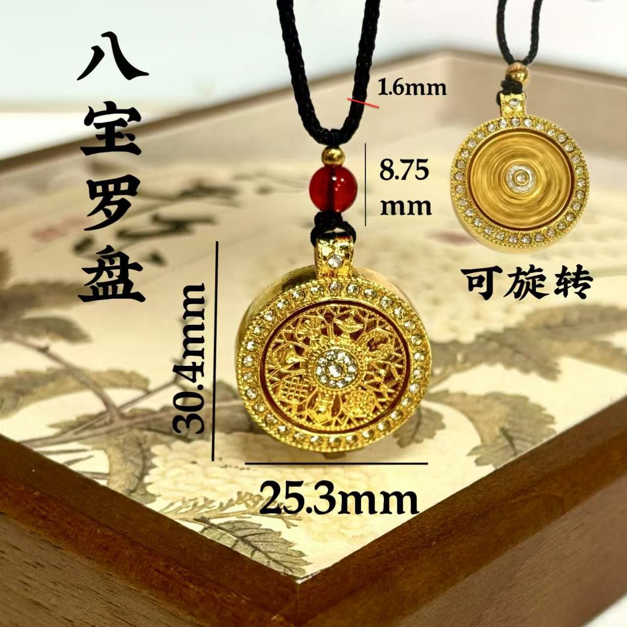 diamond-embedded rotating eight-treasure compass + box chain