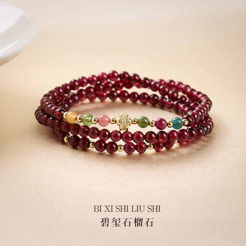 4mm garnet tourmaline three-ring bracelet