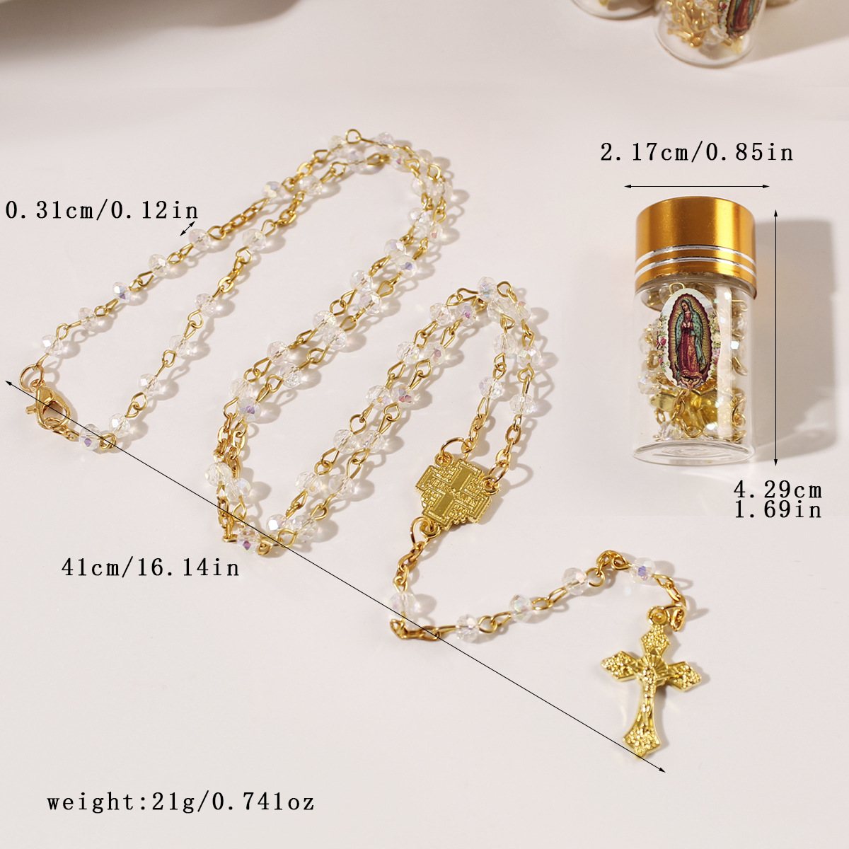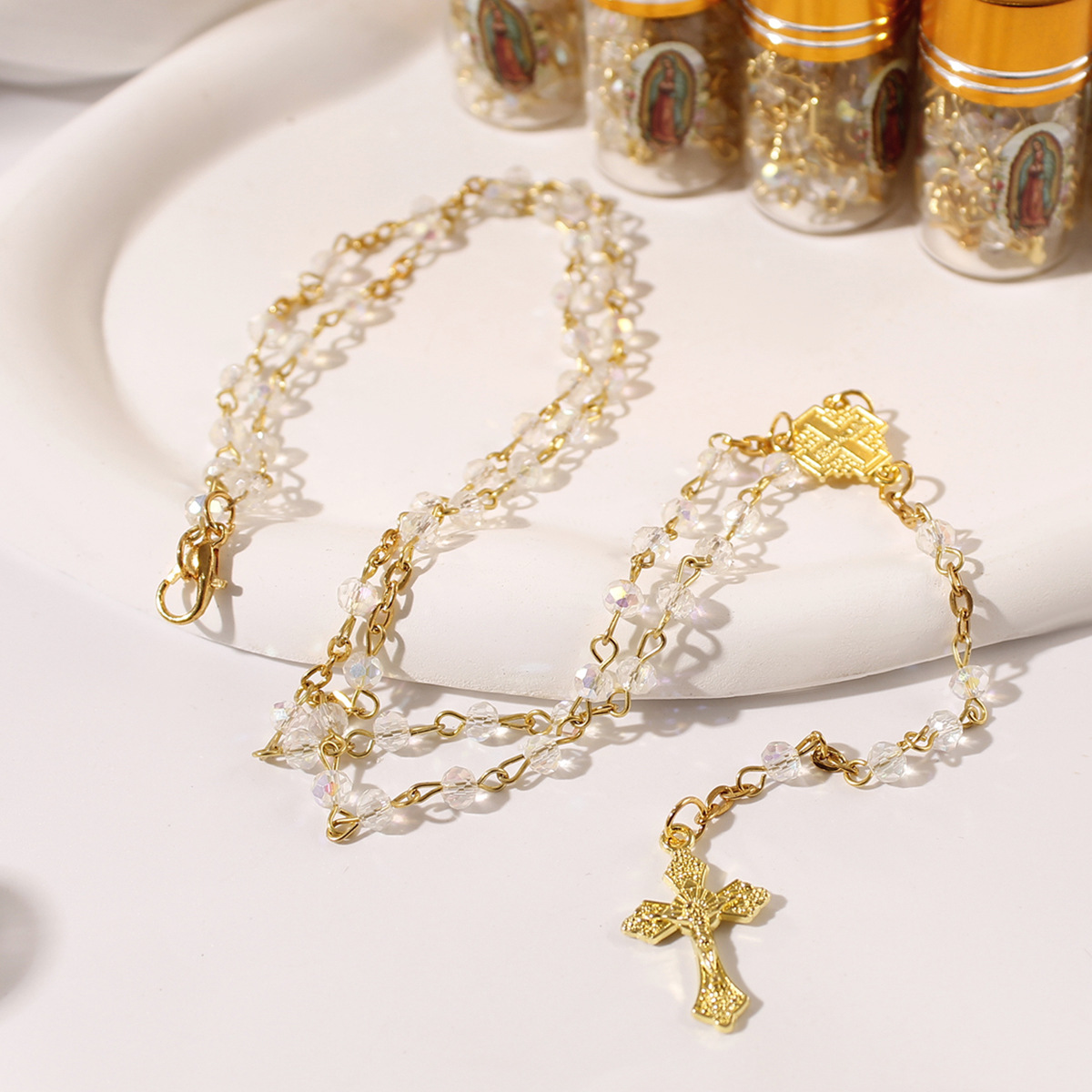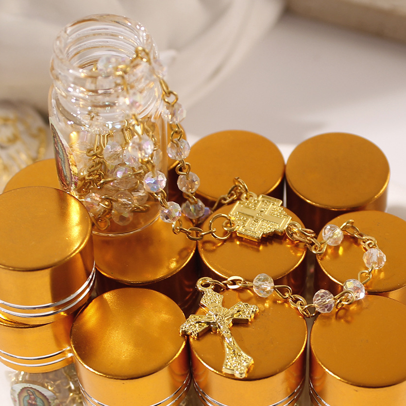 european and american foreign trade cross-border new arrival glass bottle 4mm crystal beads cross long prayer rosary necklace 中文版