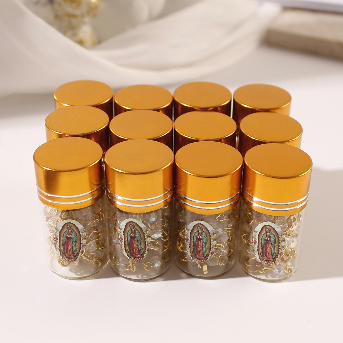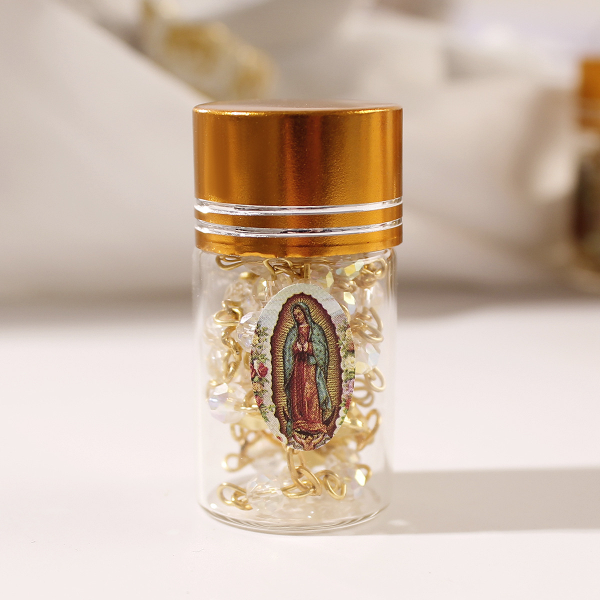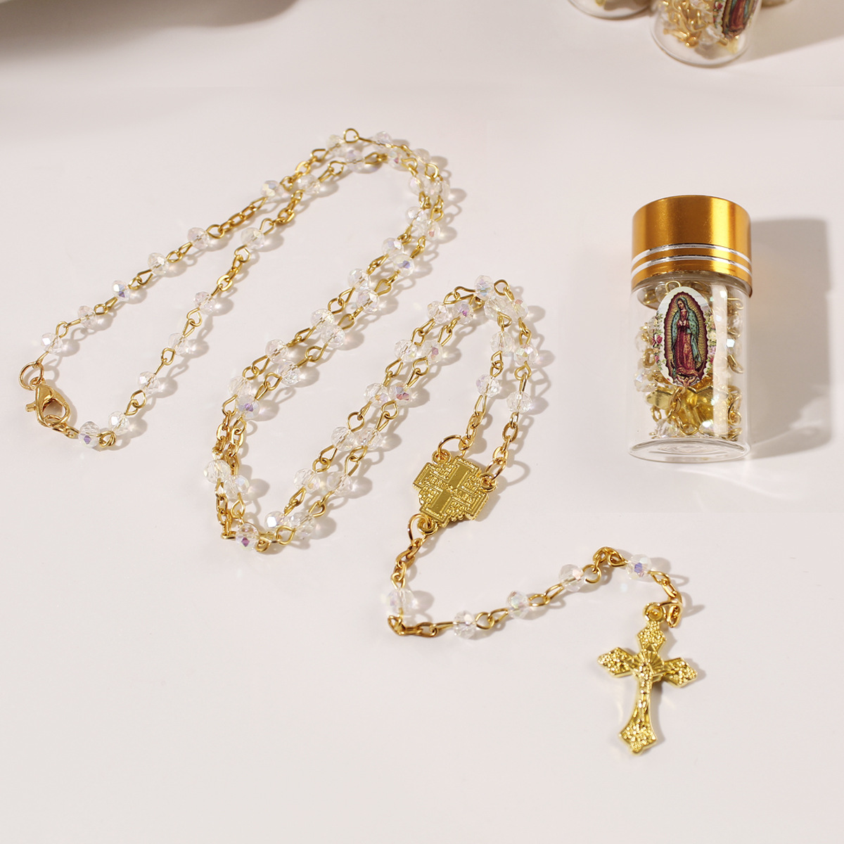 european and american foreign trade cross-border new arrival glass bottle 4mm crystal beads cross long prayer rosary necklace 中文版