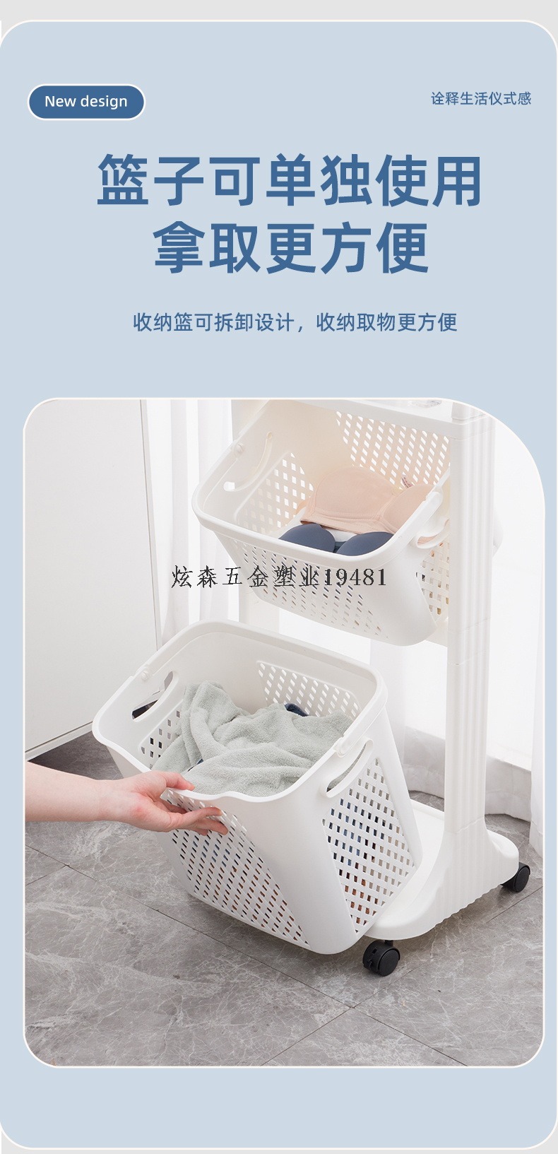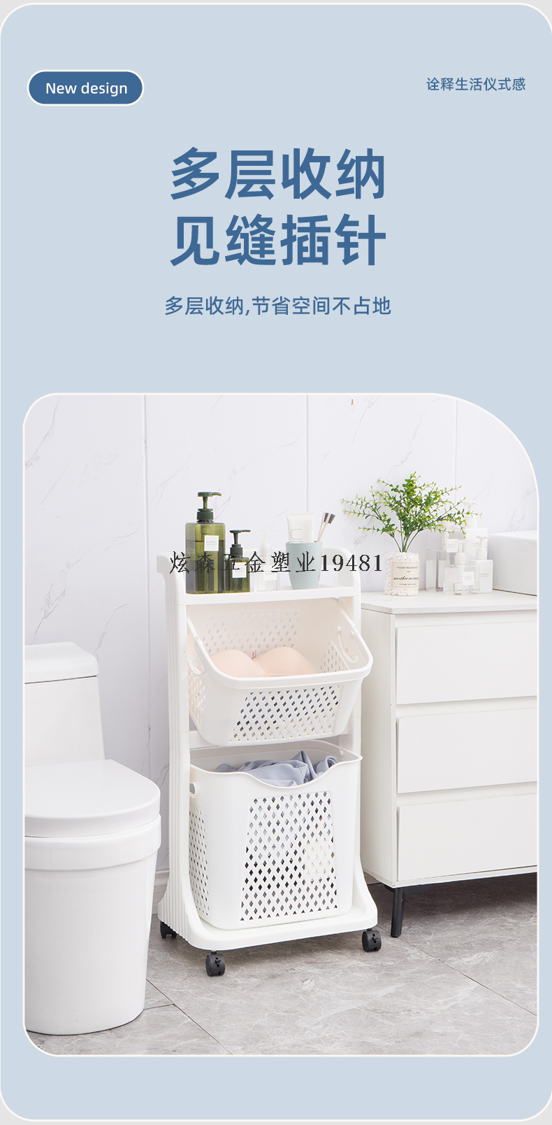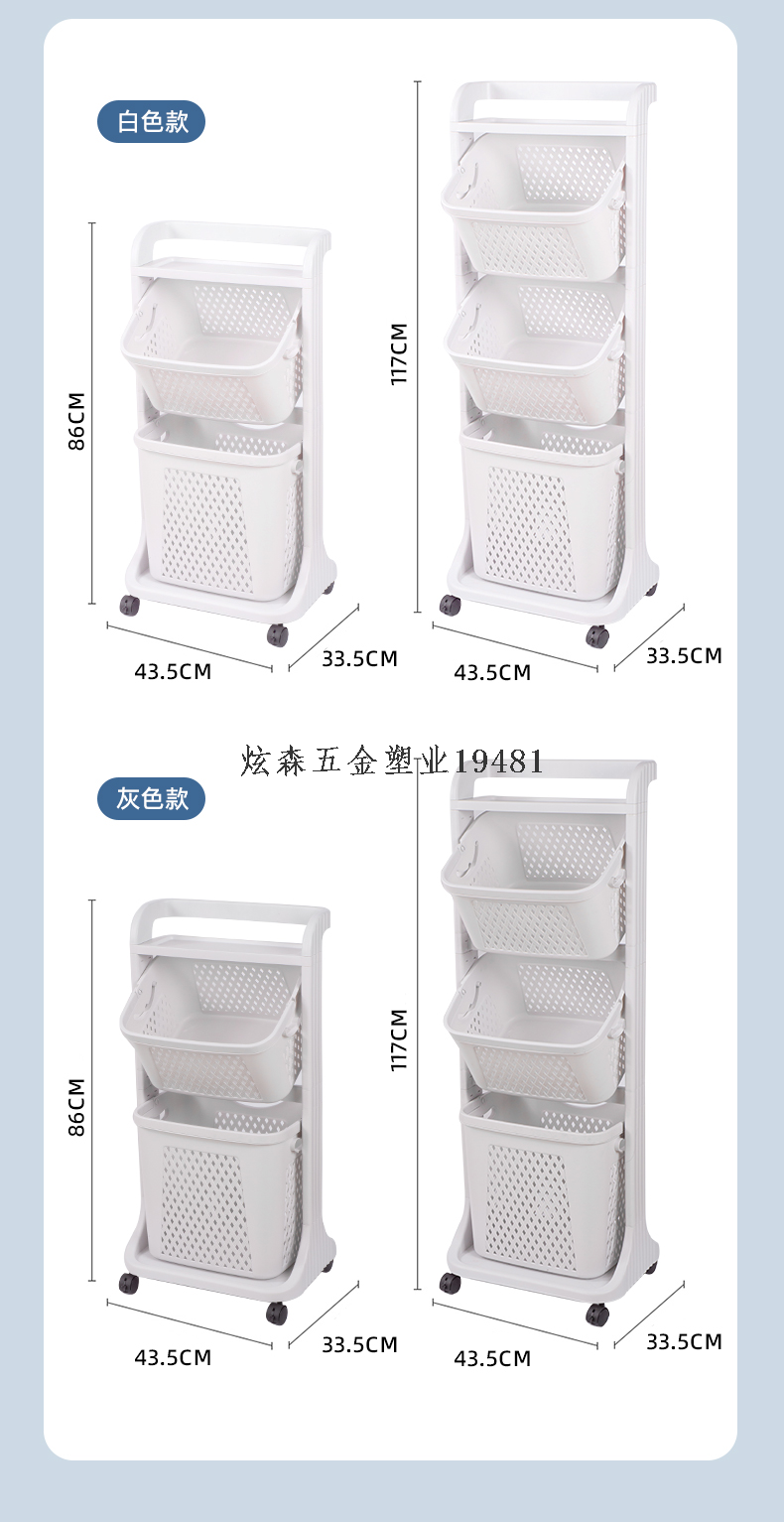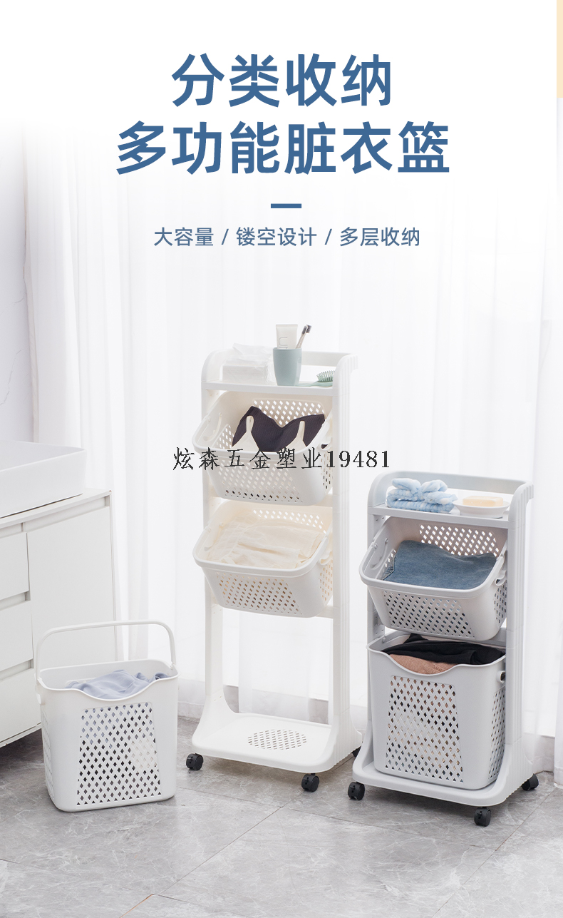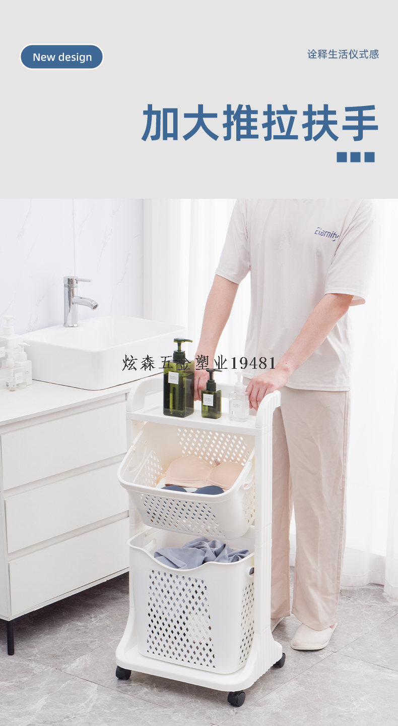 three-layer stroller dirty clothes storage rack large capacity household clothing organizing rack 中文版