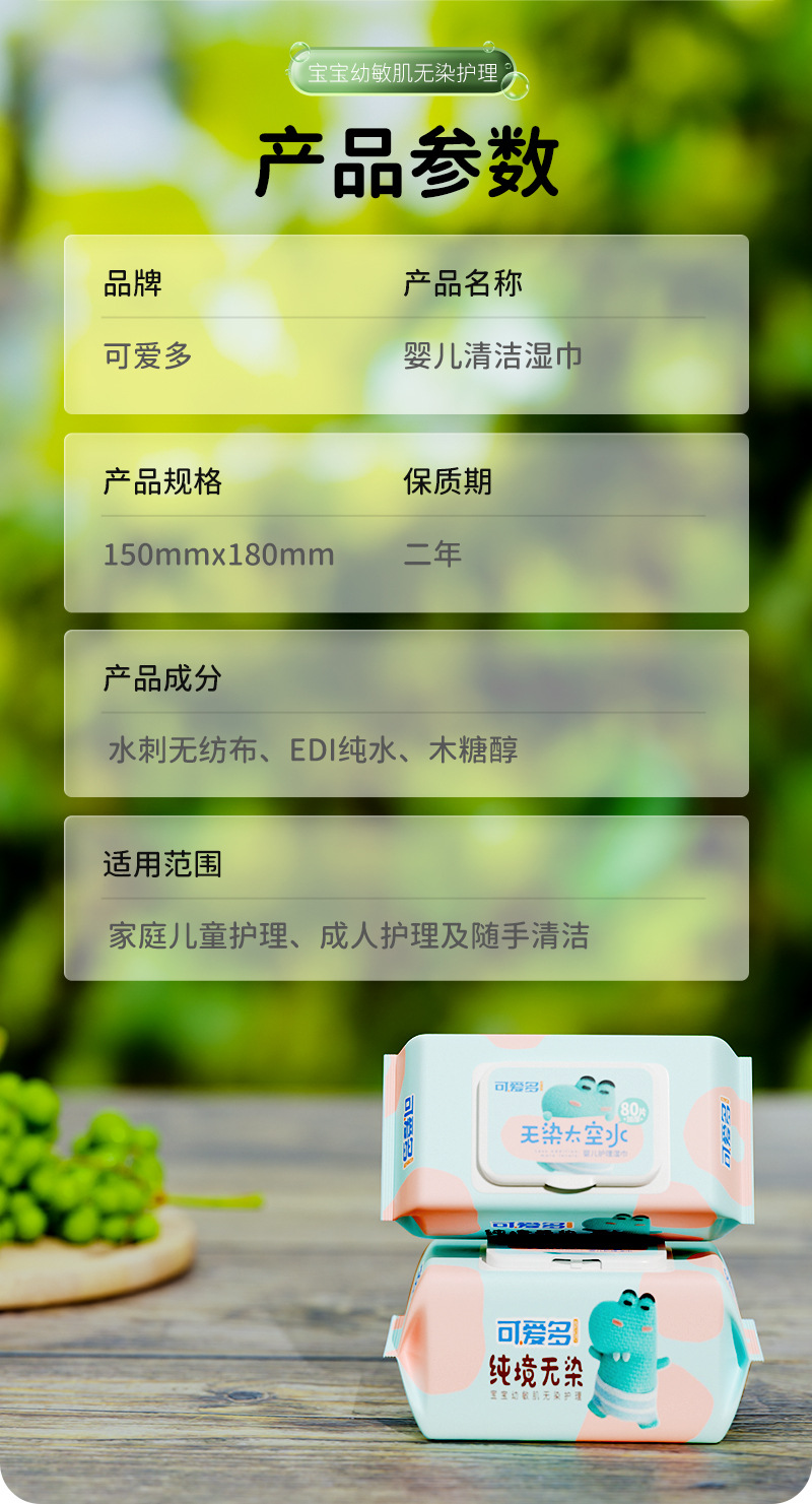 0 alcohol, 0 fluorescent agents, 0 irritating preservatives, suitable for newborns' mouth and hands.
