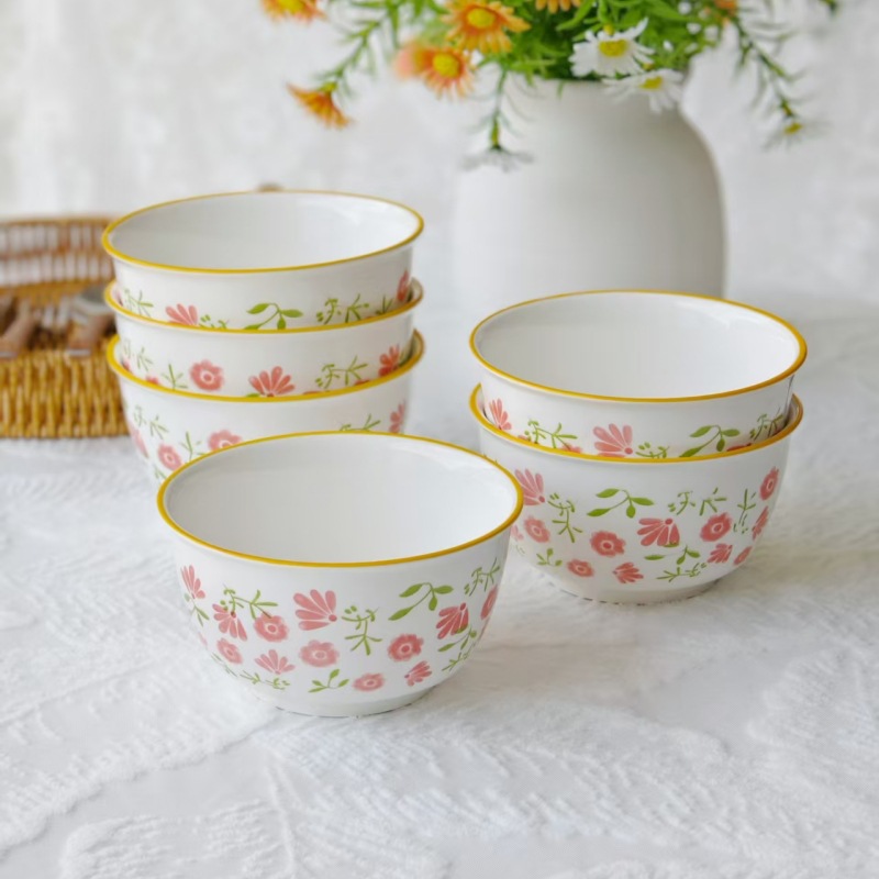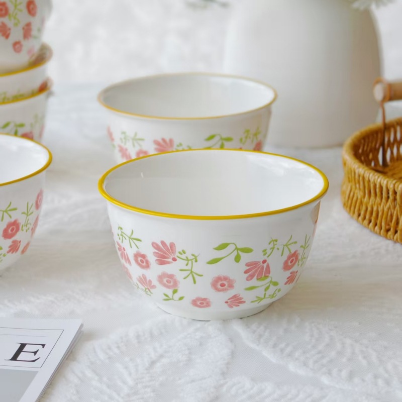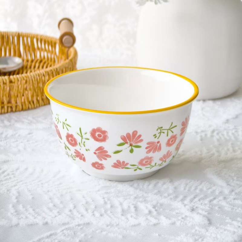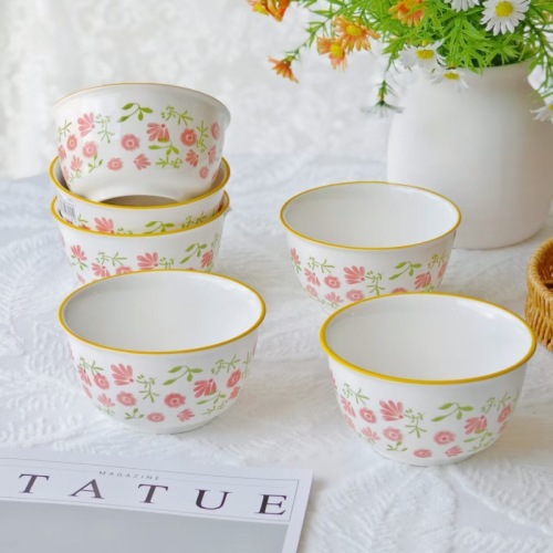 underglaze small flower ceramic bowl household 5-inch rice bowl internet celebrity hotel kitchen supplies tableware noodle bowl soup bowl 中文版